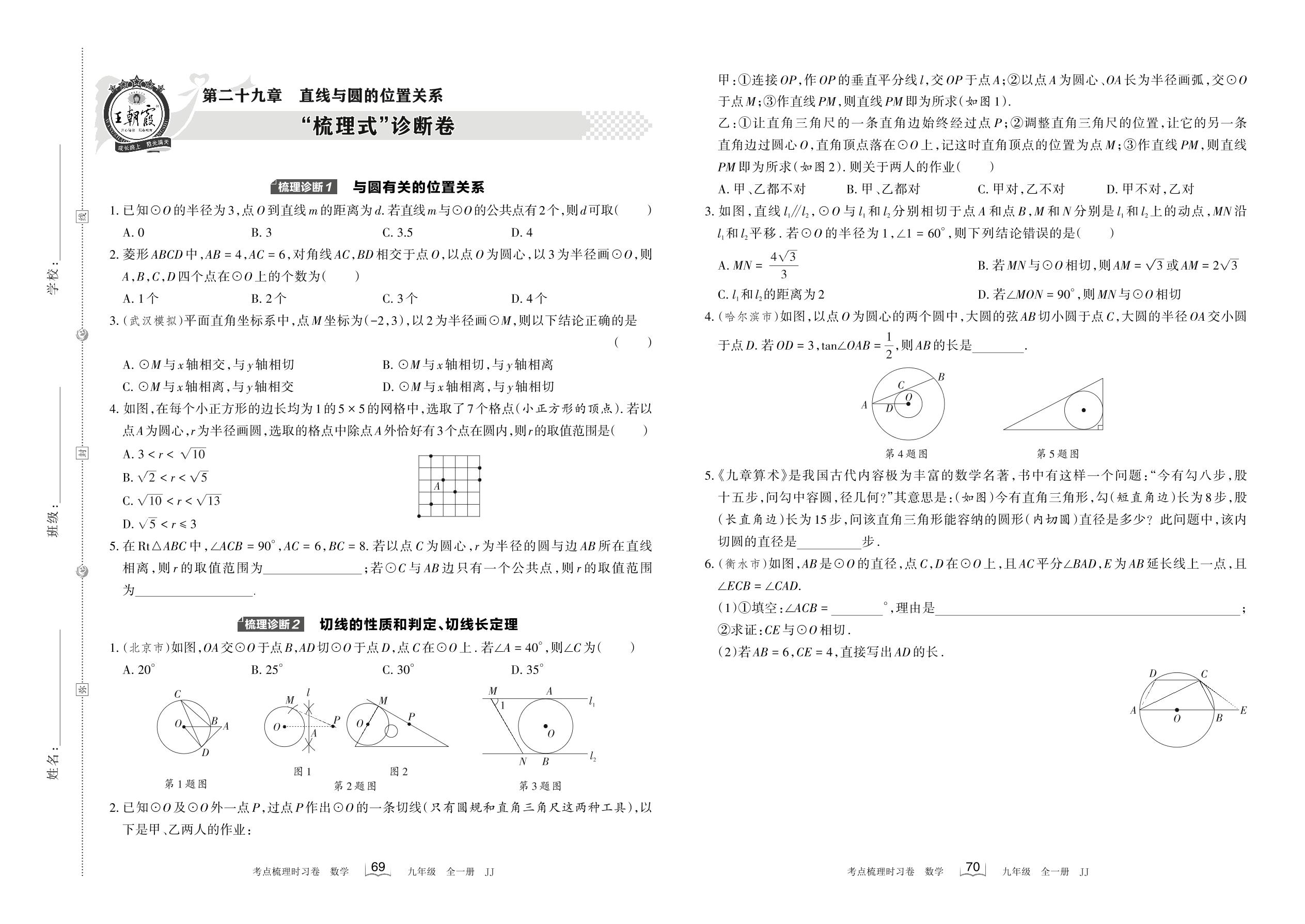 2023春九年级数学冀教版 第二十九章 “梳理式”诊断卷