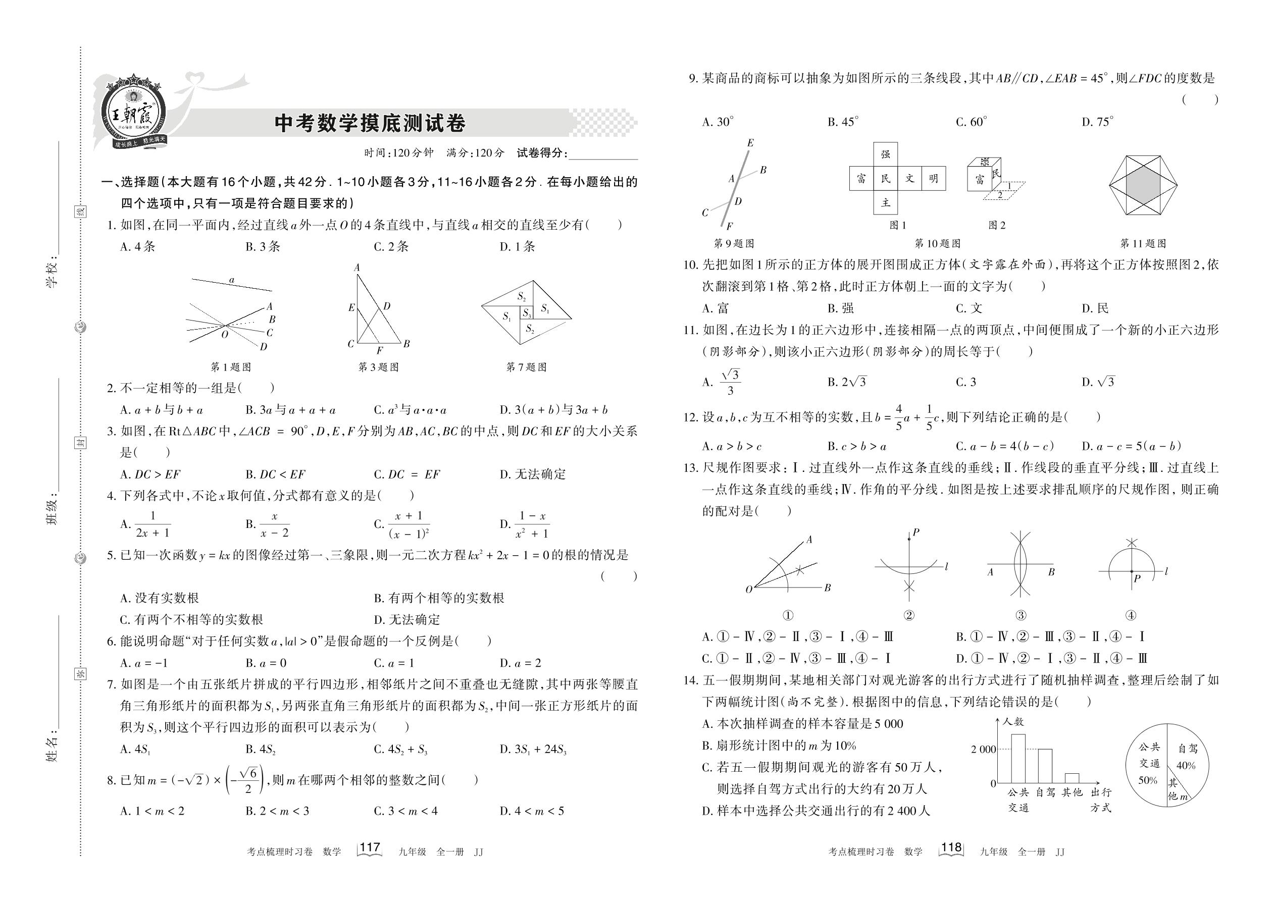 2022全一册九年级数学冀教版 中考数学摸底测试卷