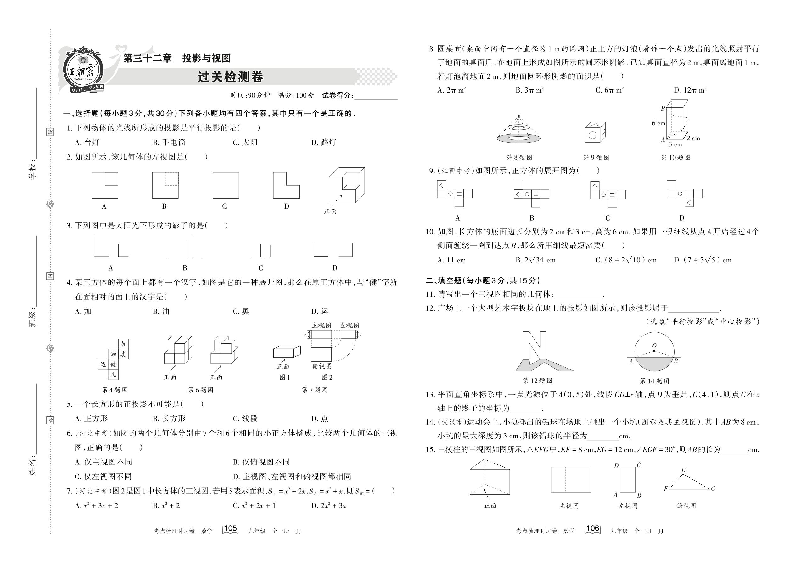 2023春九年级数学冀教版 第三十二章 过关检测卷