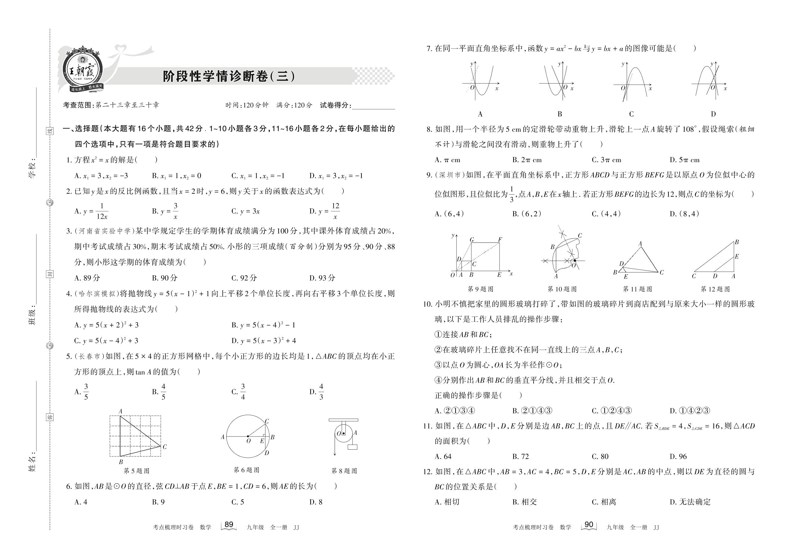 2023春九年级数学冀教版 阶段性学情诊断卷(三)