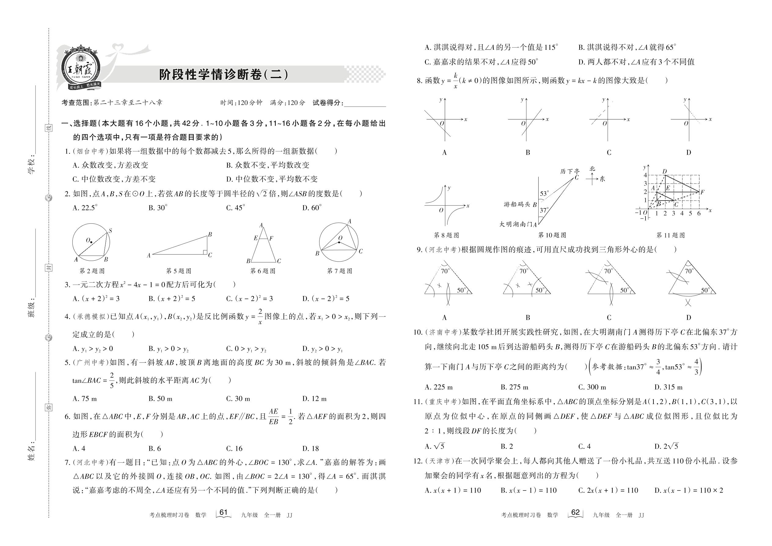 2022秋九年级数学冀教版 阶段性学情诊断卷(二)