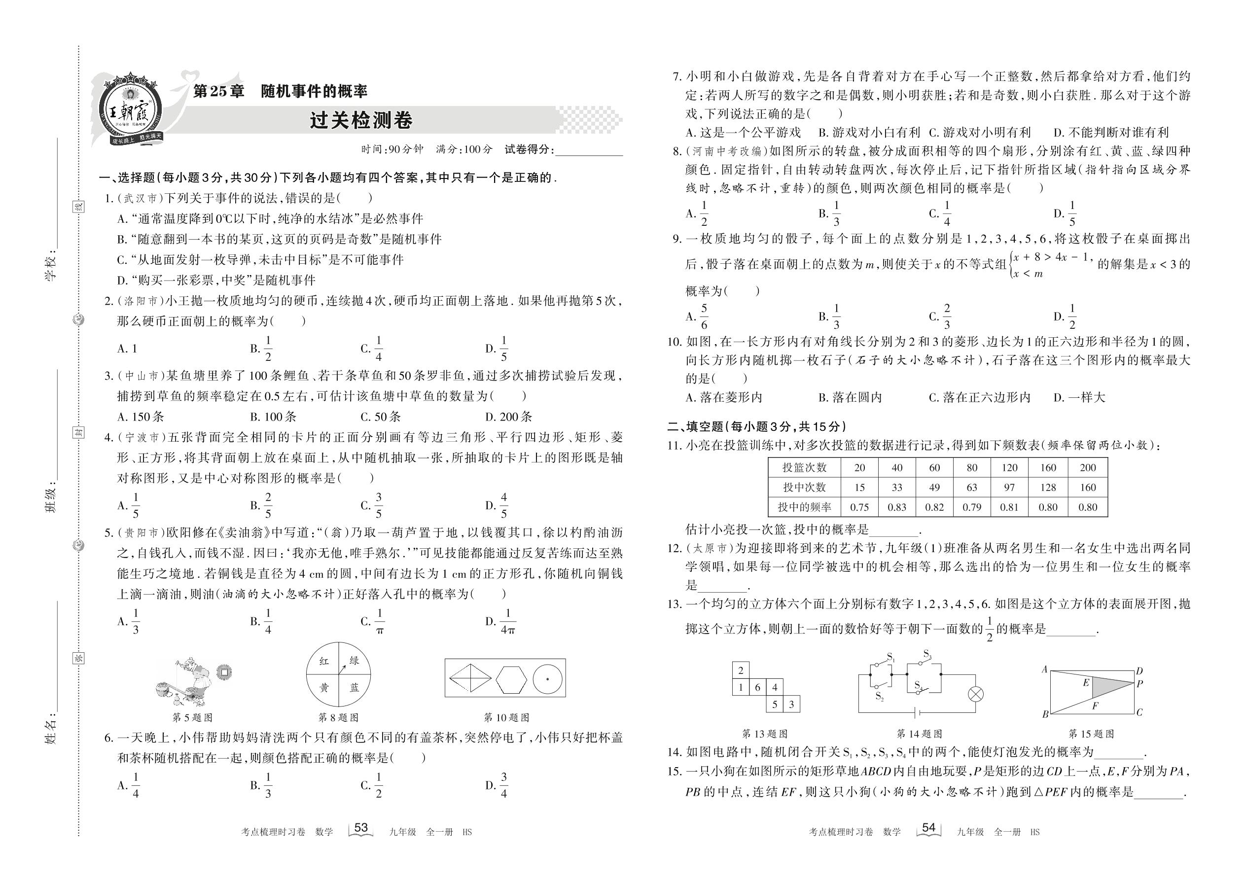 2022秋九年级数学华师版 第25章 过关检测卷