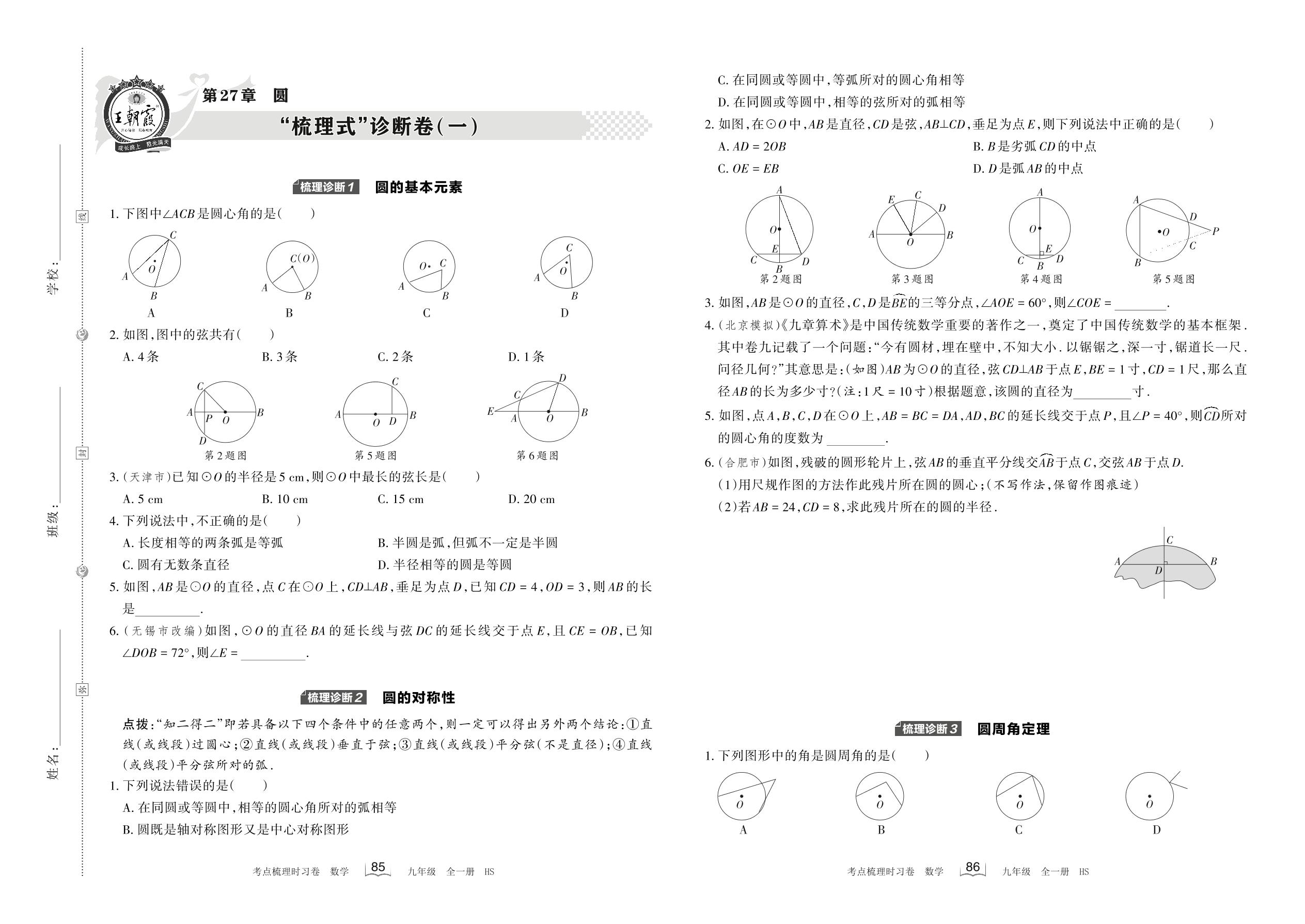 2023春九年级数学华师版 第27章 “梳理式”诊断卷(一)