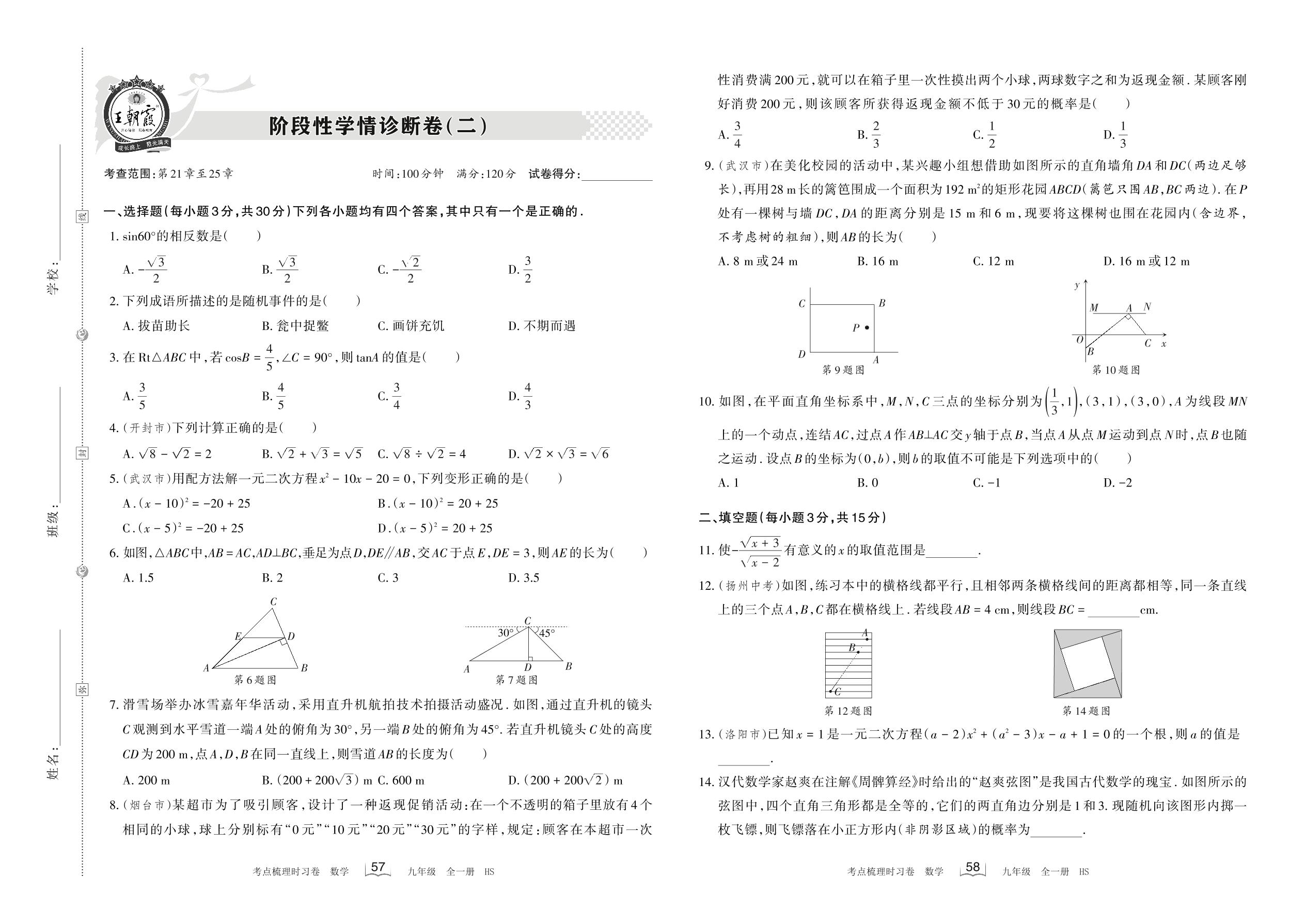 2022秋九年级数学华师版 阶段性学情诊断卷(二)