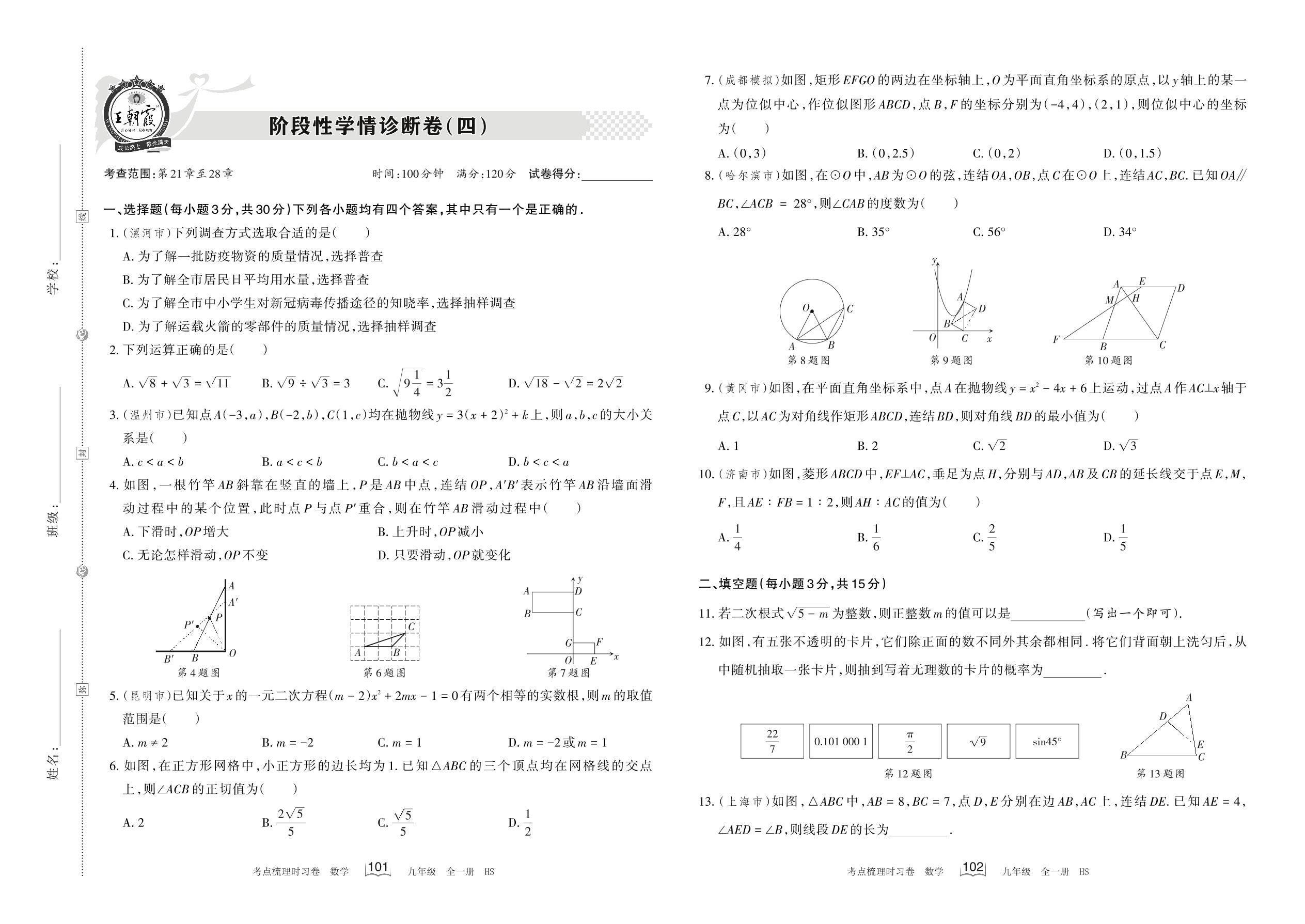 2023春九年级数学华师版 阶段性学情诊断卷(四)