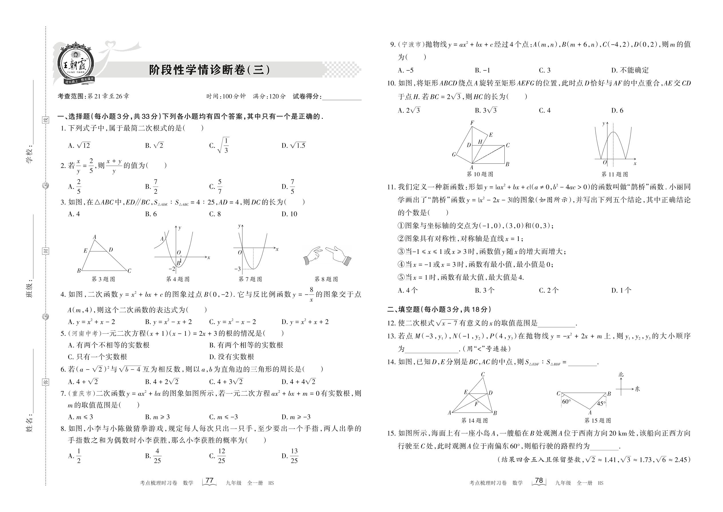 2023春九年级数学华师版 阶段性学情诊断卷(三)