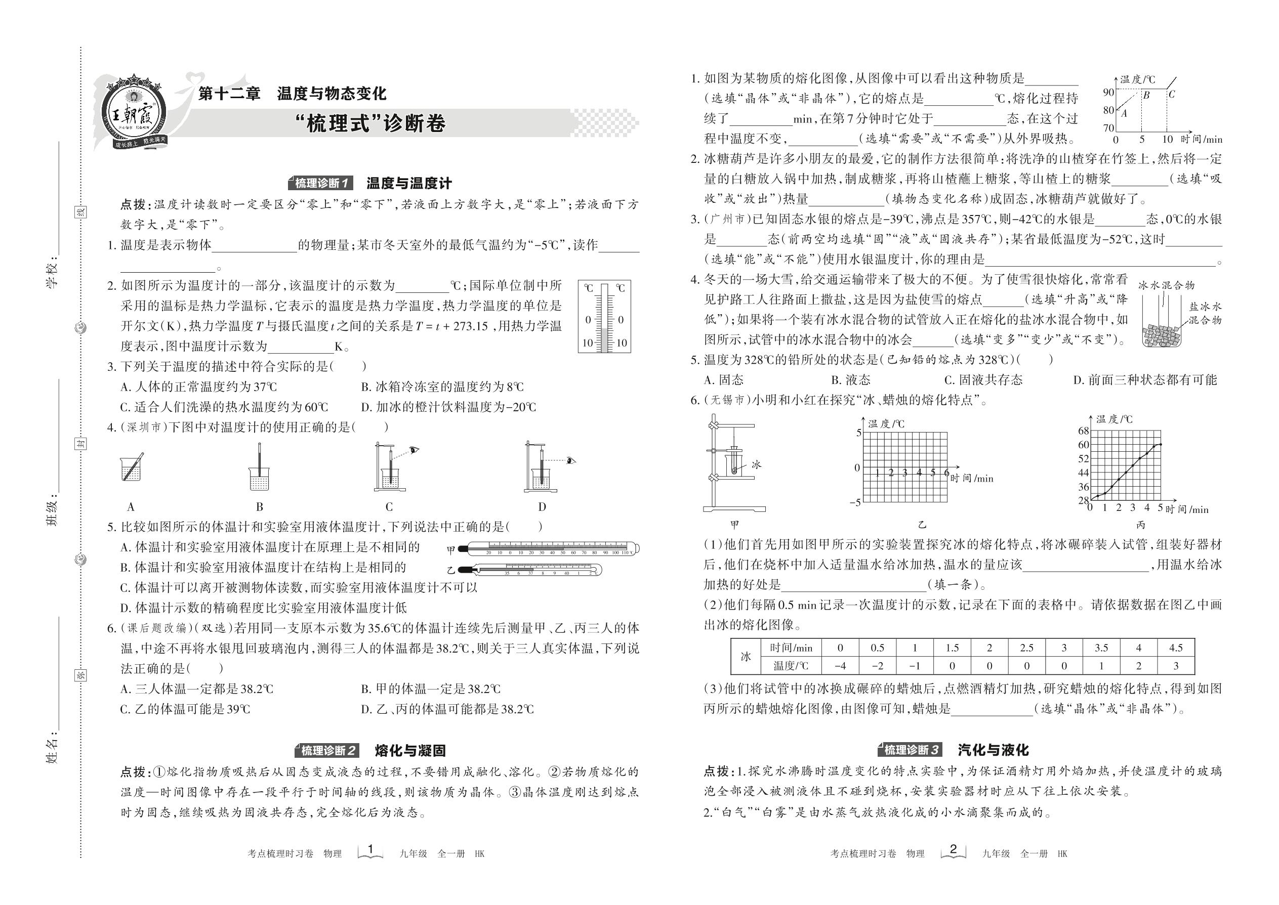 2021-2022学年九年级物理沪科版 第十二章 “梳理式”诊断卷