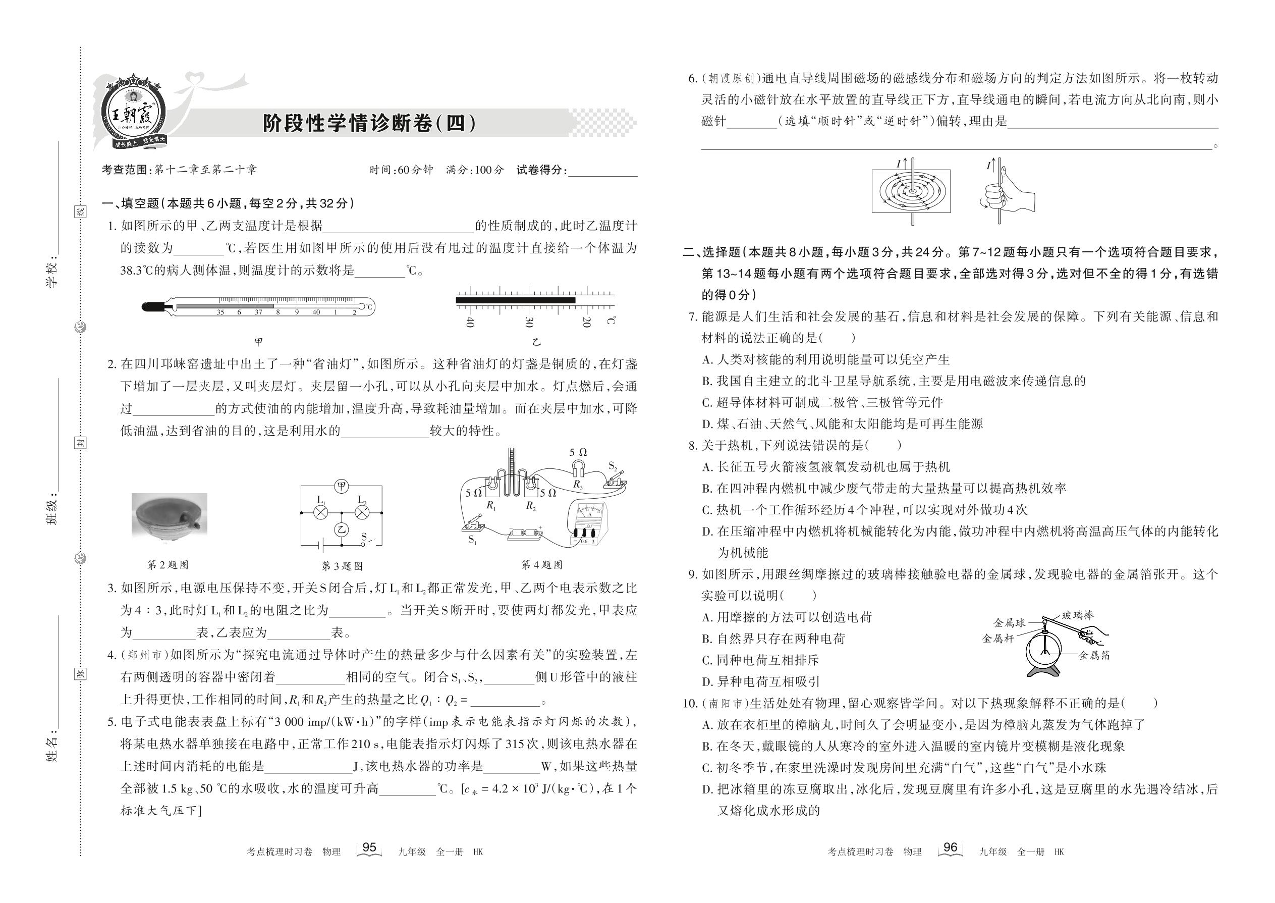 2022全一册九年级物理沪科版 阶段性学情诊断卷(四)