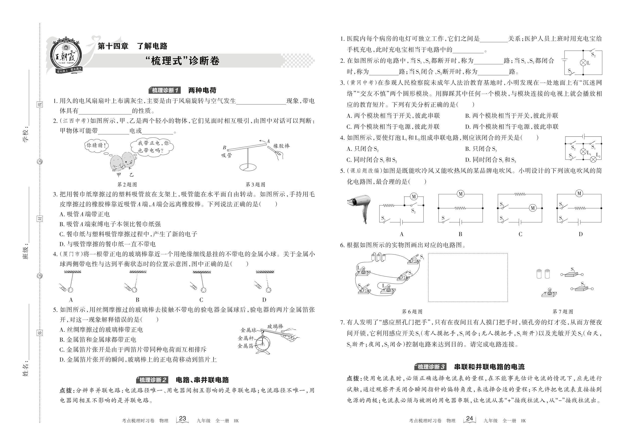 2021-2022学年九年级物理沪科版 第十四章 “梳理式”诊断卷