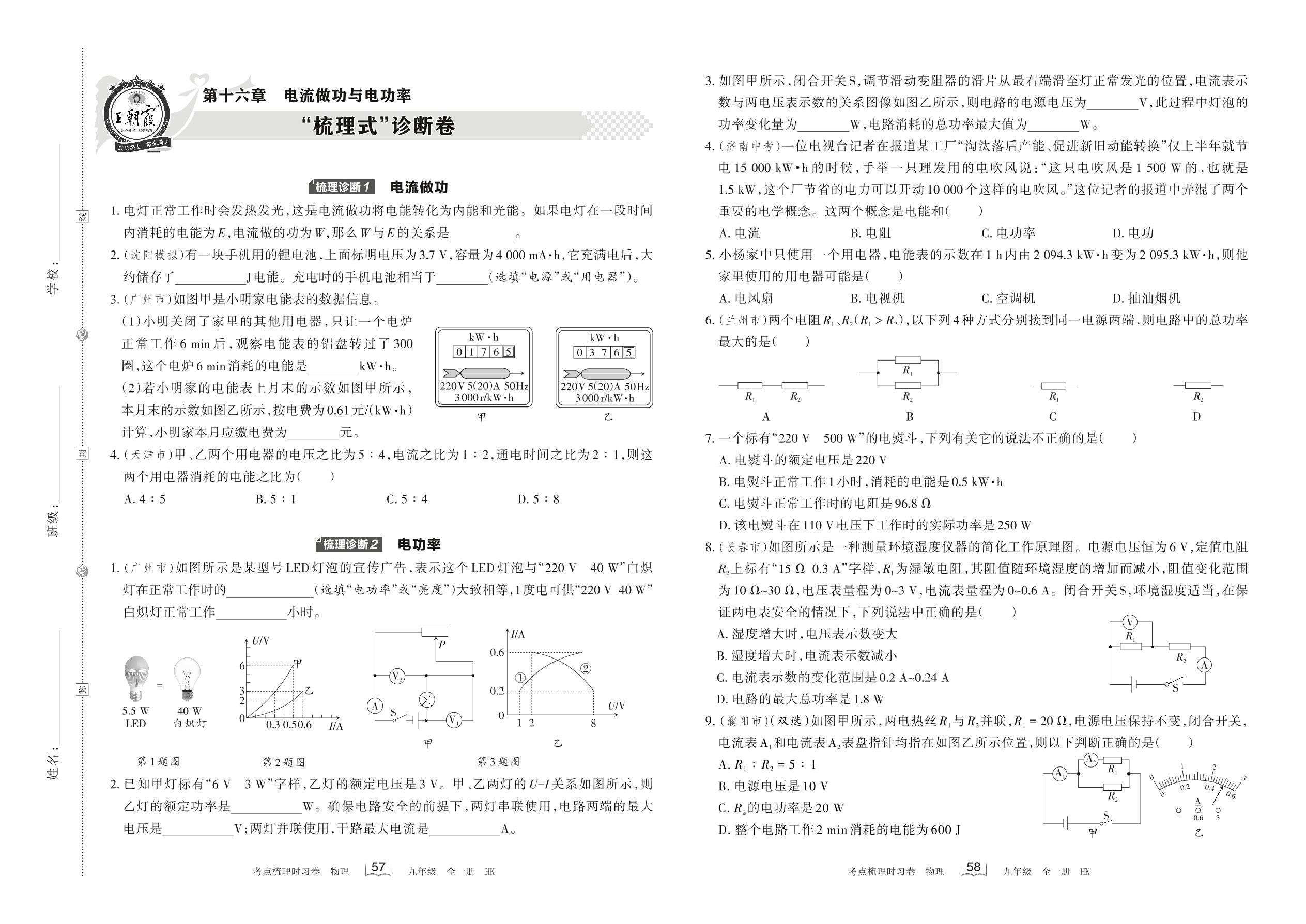 2021-2022学年九年级物理沪科版 第十六章 “梳理式”诊断卷
