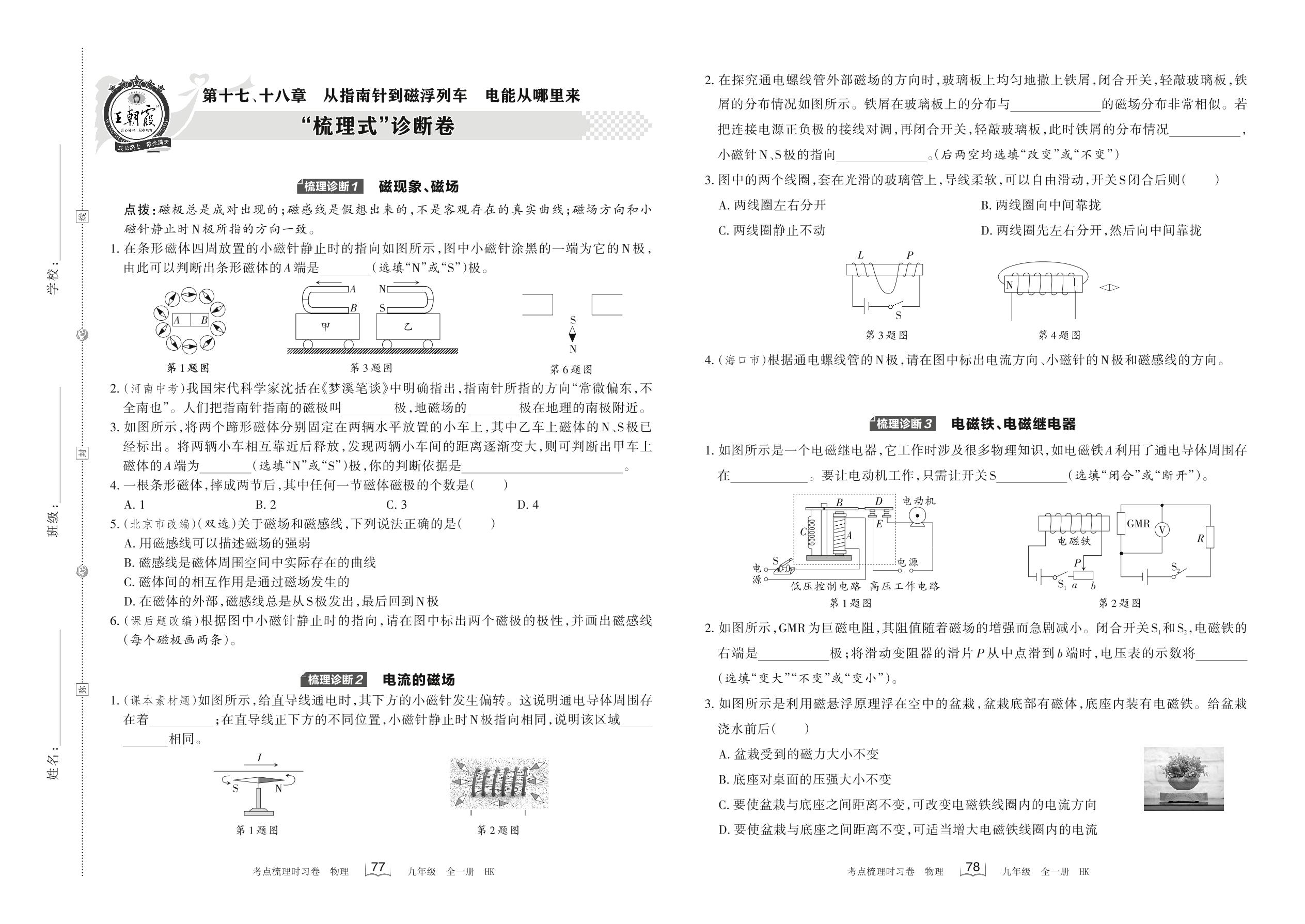 2021-2022学年九年级物理沪科版 第十七、十八章 “梳理式”诊断卷