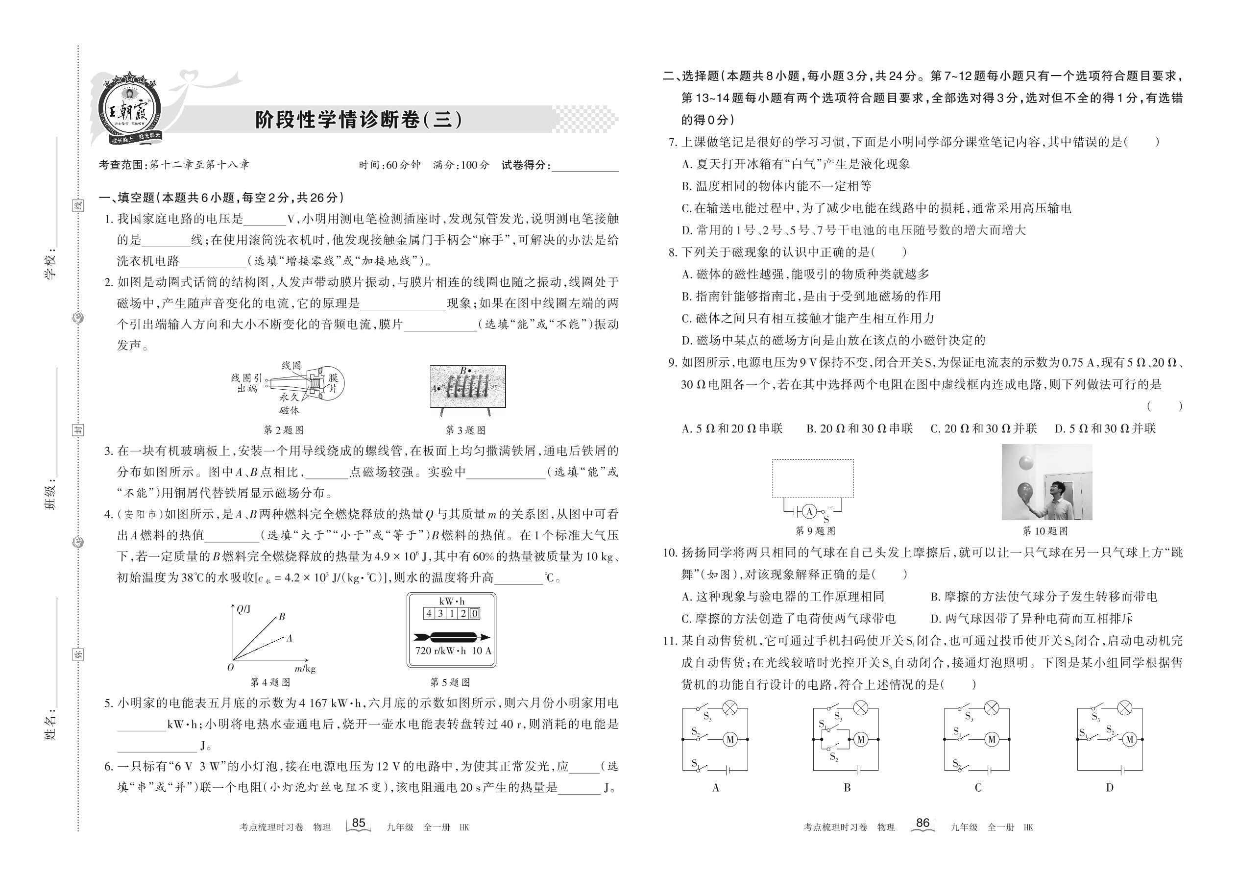 2022全一册九年级物理沪科版 阶段性学情诊断卷(三)