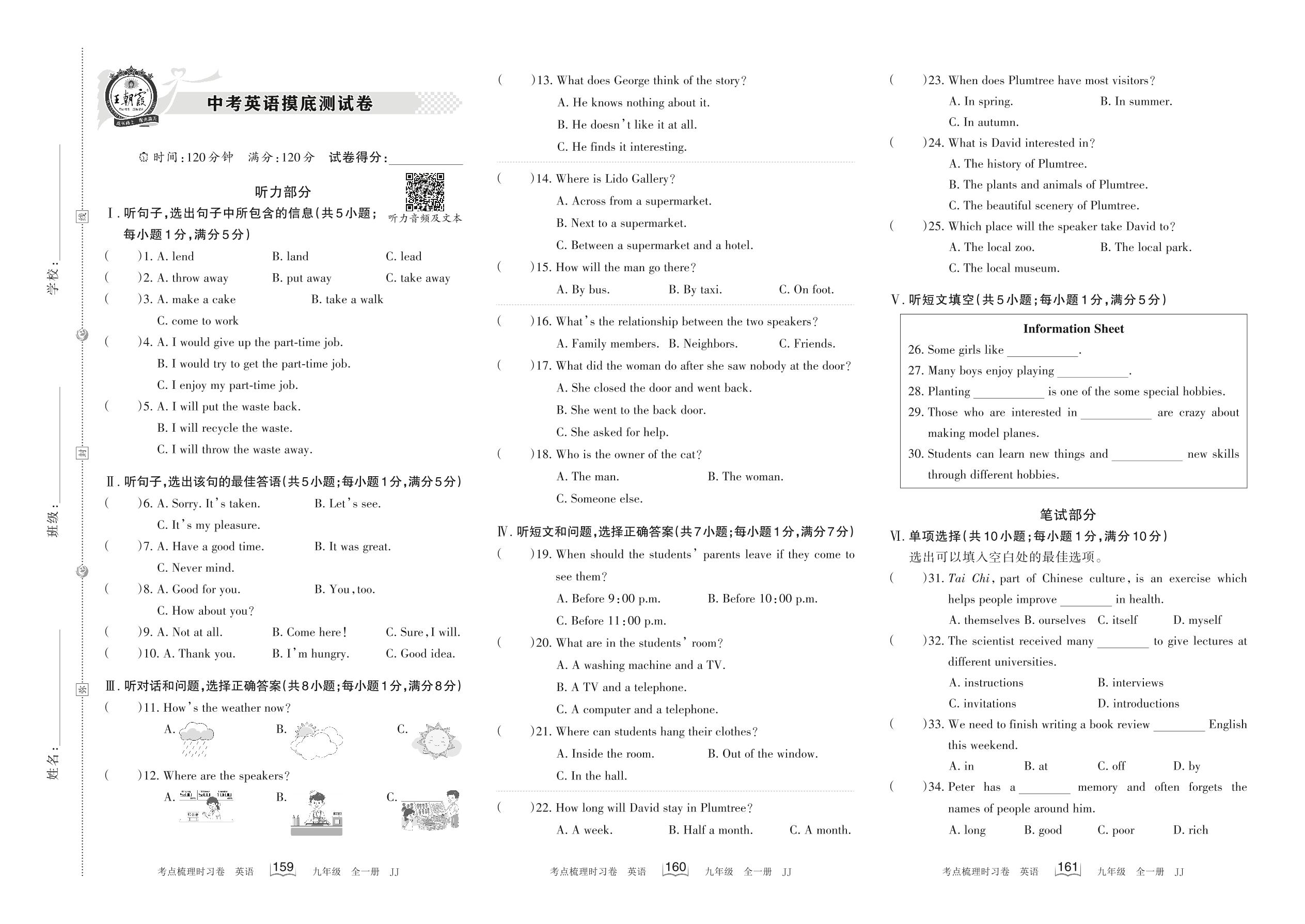 2022全一册九年级英语冀教版 中考英语摸底测试卷
