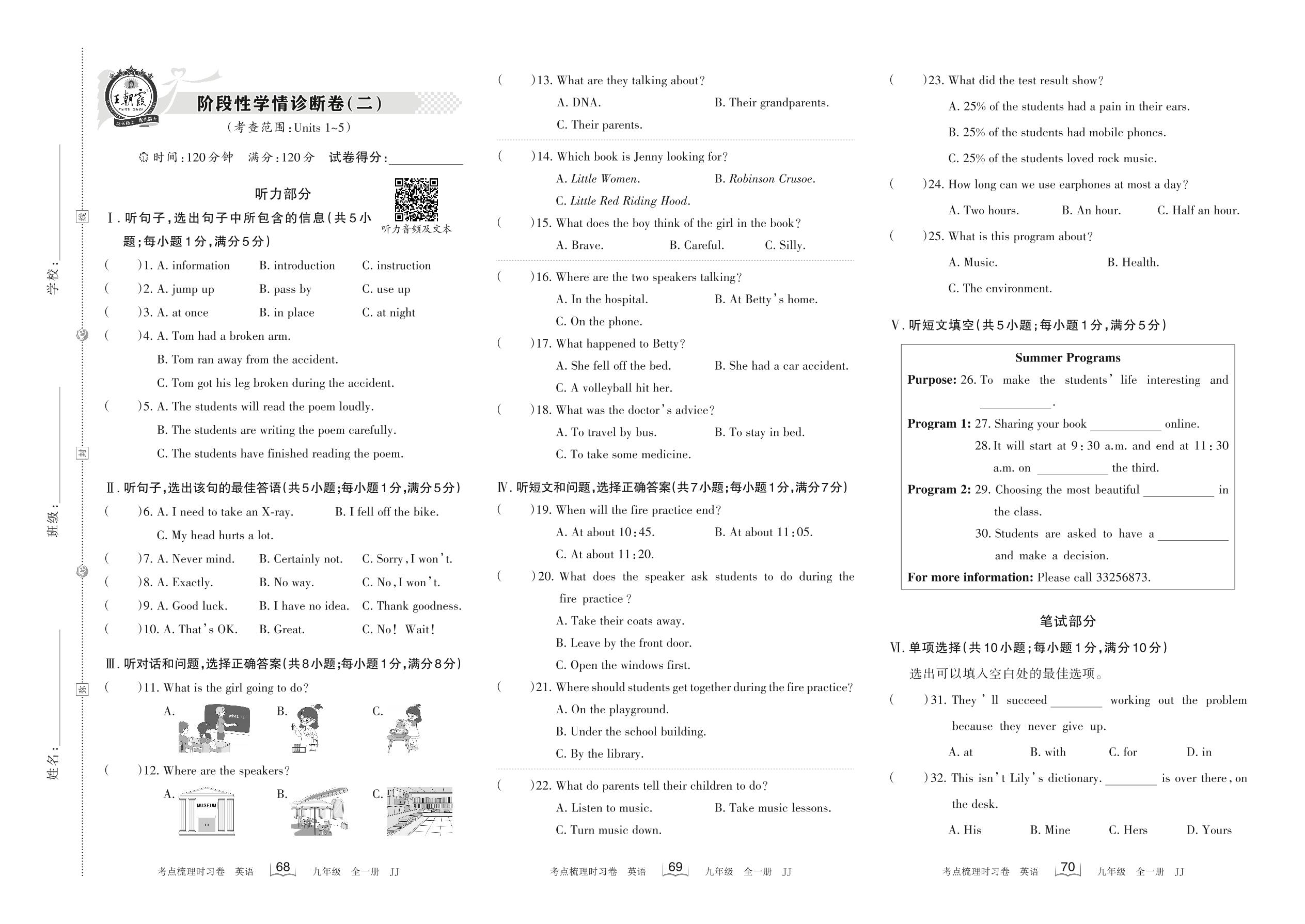 2022-2023学年九年级英语冀教版 阶段性学情诊断卷(二)