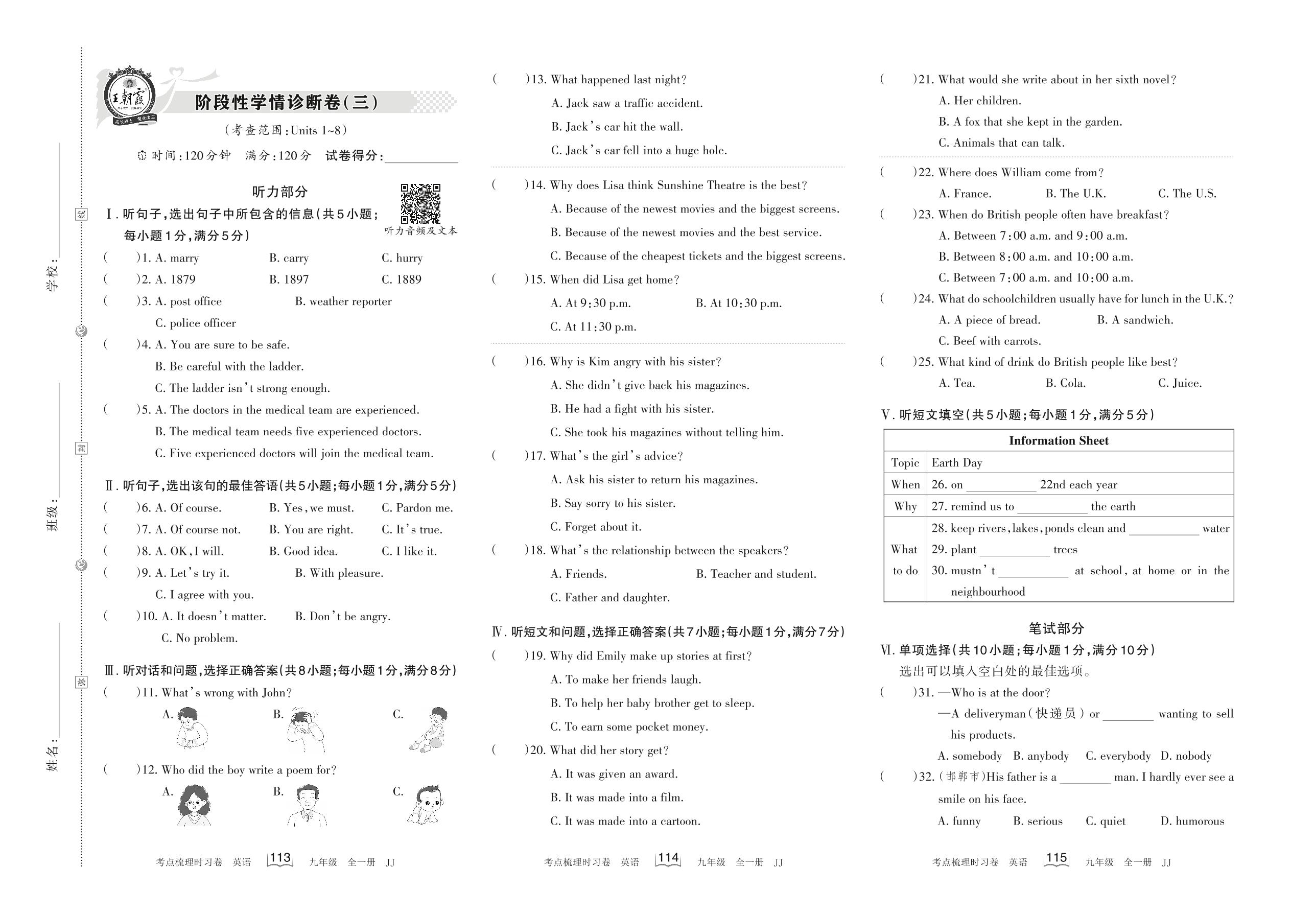 2022-2023学年九年级英语冀教版 阶段性学情诊断卷(三)
