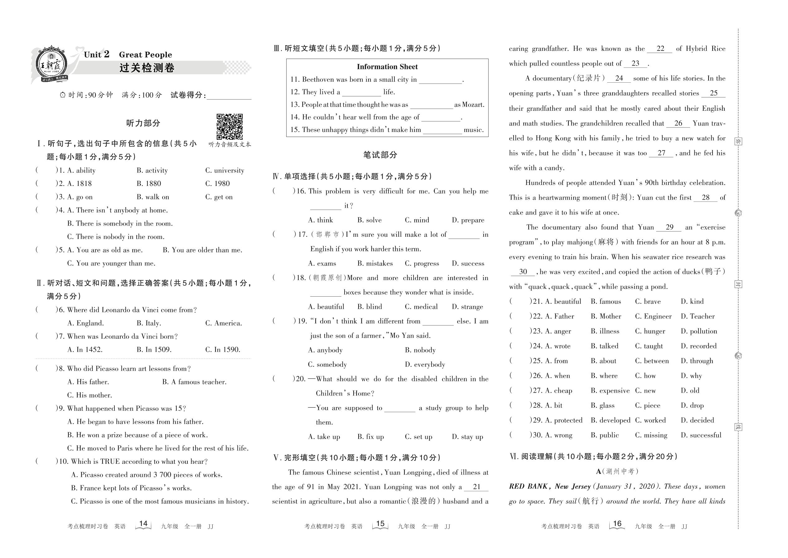 九年级英语冀教版全一册单元卷