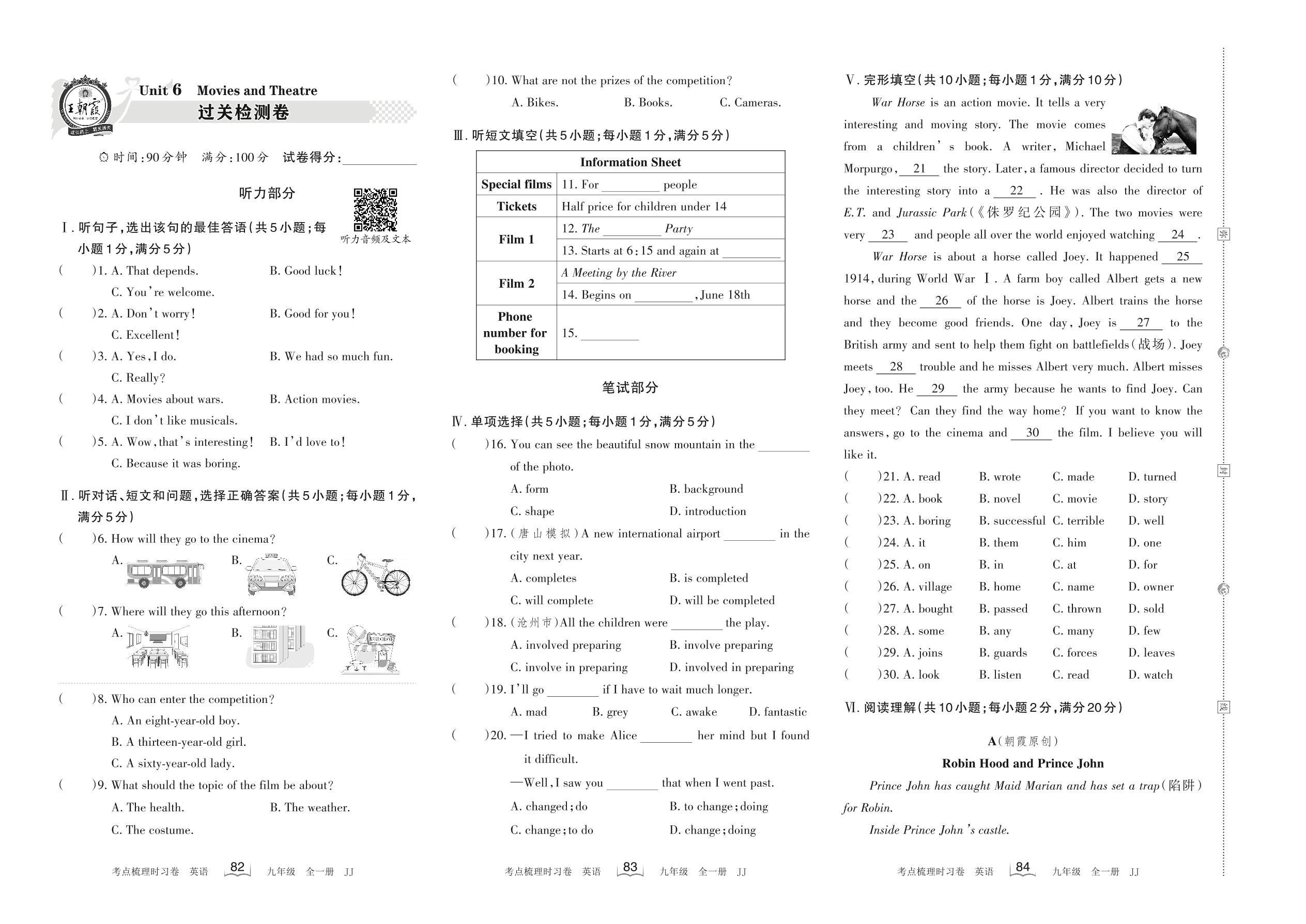 2022-2023学年九年级英语冀教版 Unit 6 过关检测卷