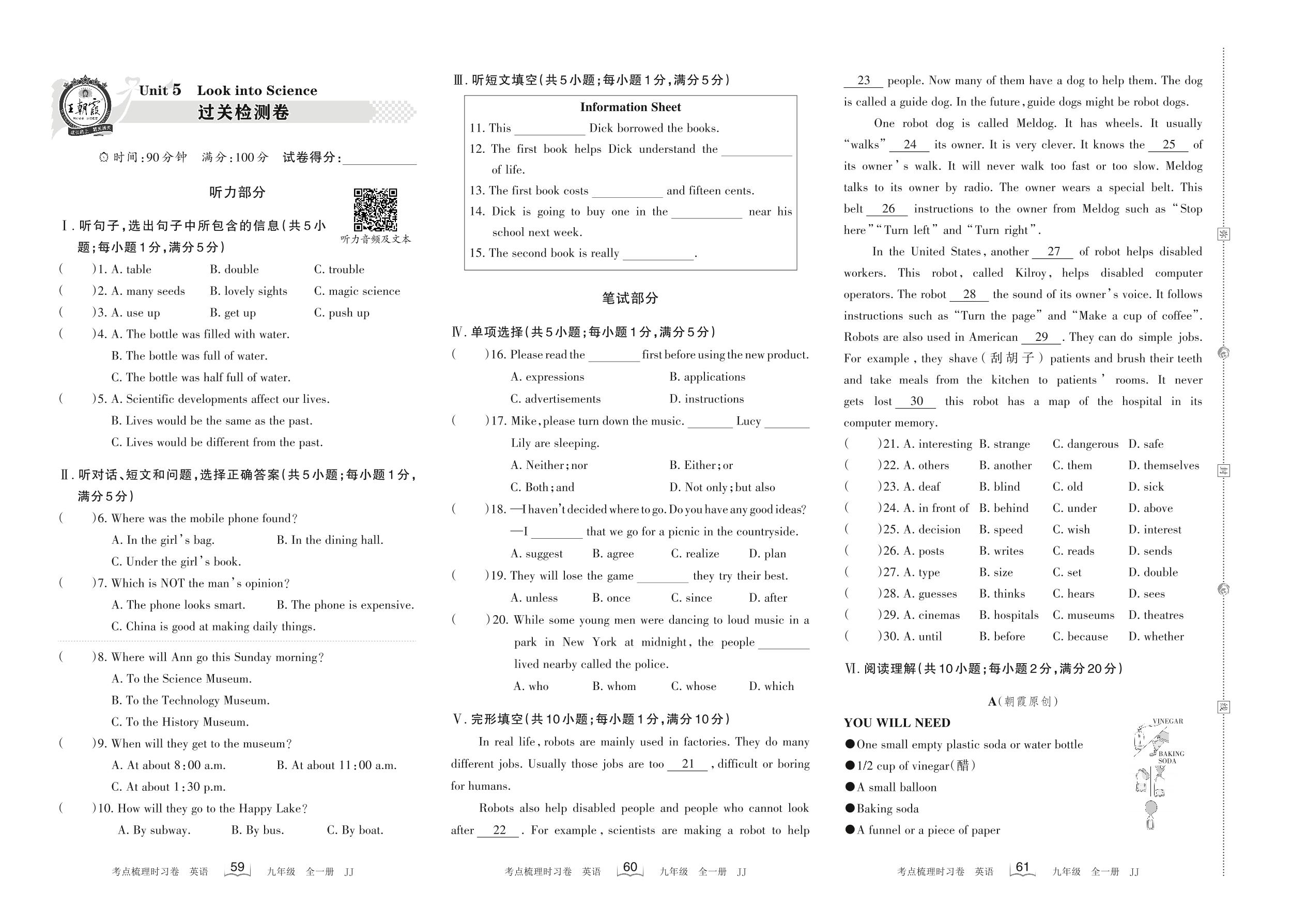 2022-2023学年九年级英语冀教版 Unit 5 过关检测卷