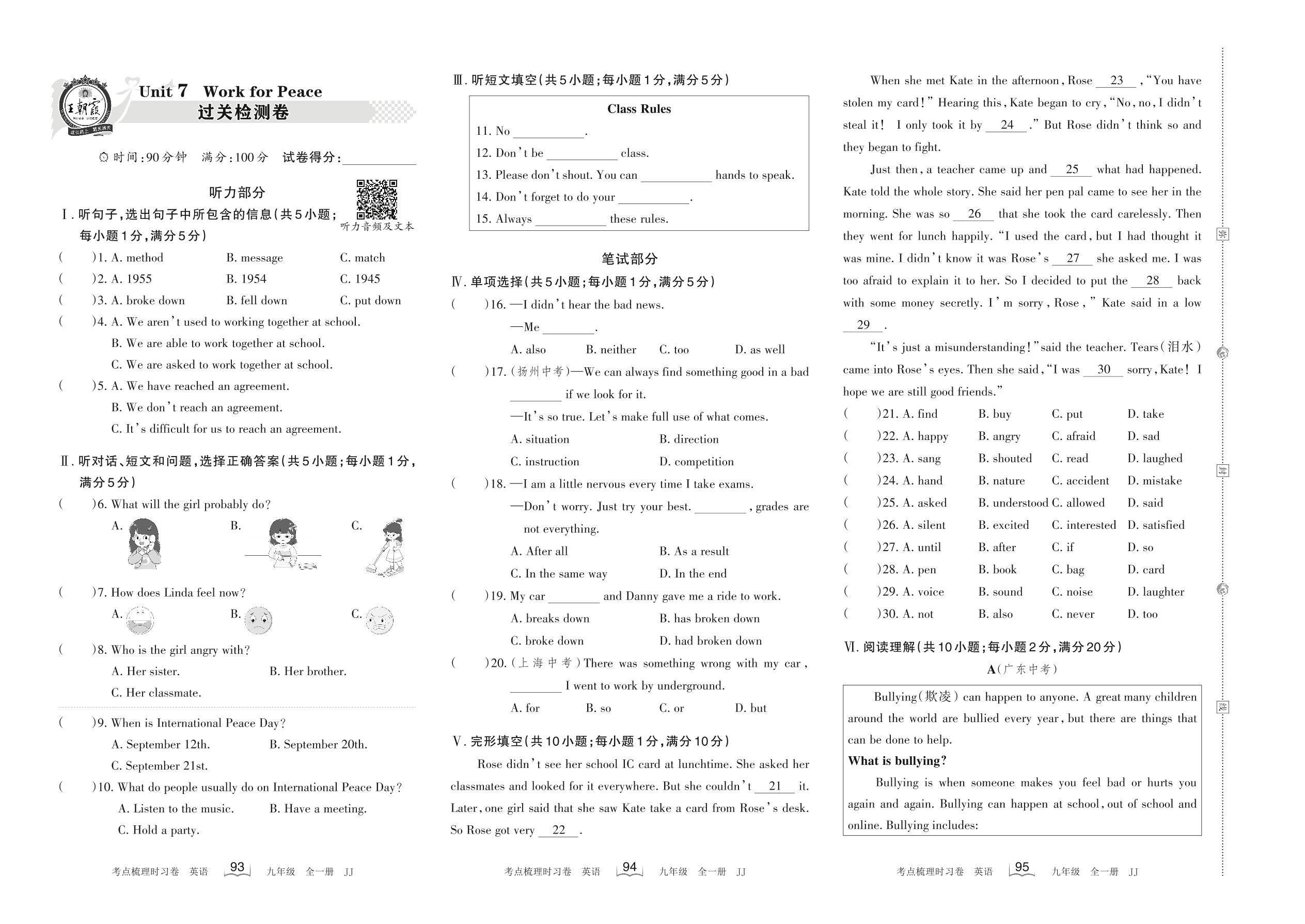 2022-2023学年九年级英语冀教版 Unit 7 过关检测卷
