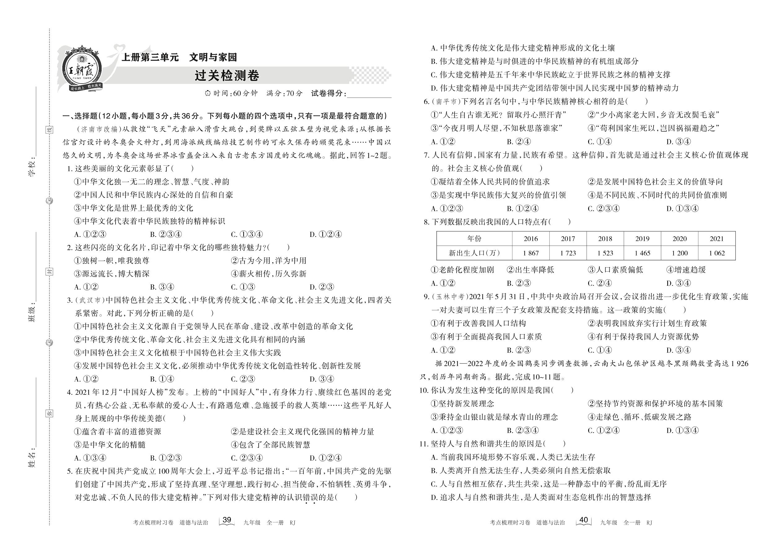 2022上册九年级道德与法治人教版 第三单元 过关检测卷