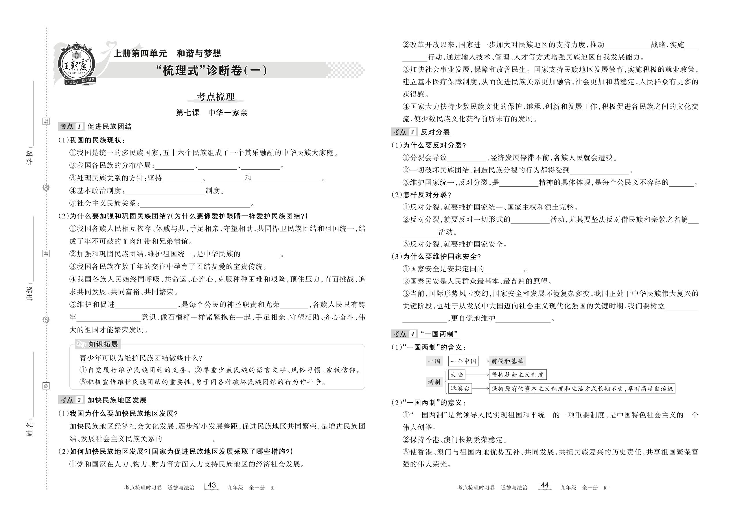 2022上册九年级道德与法治人教版 第四单元 “梳理式”诊断卷(一)