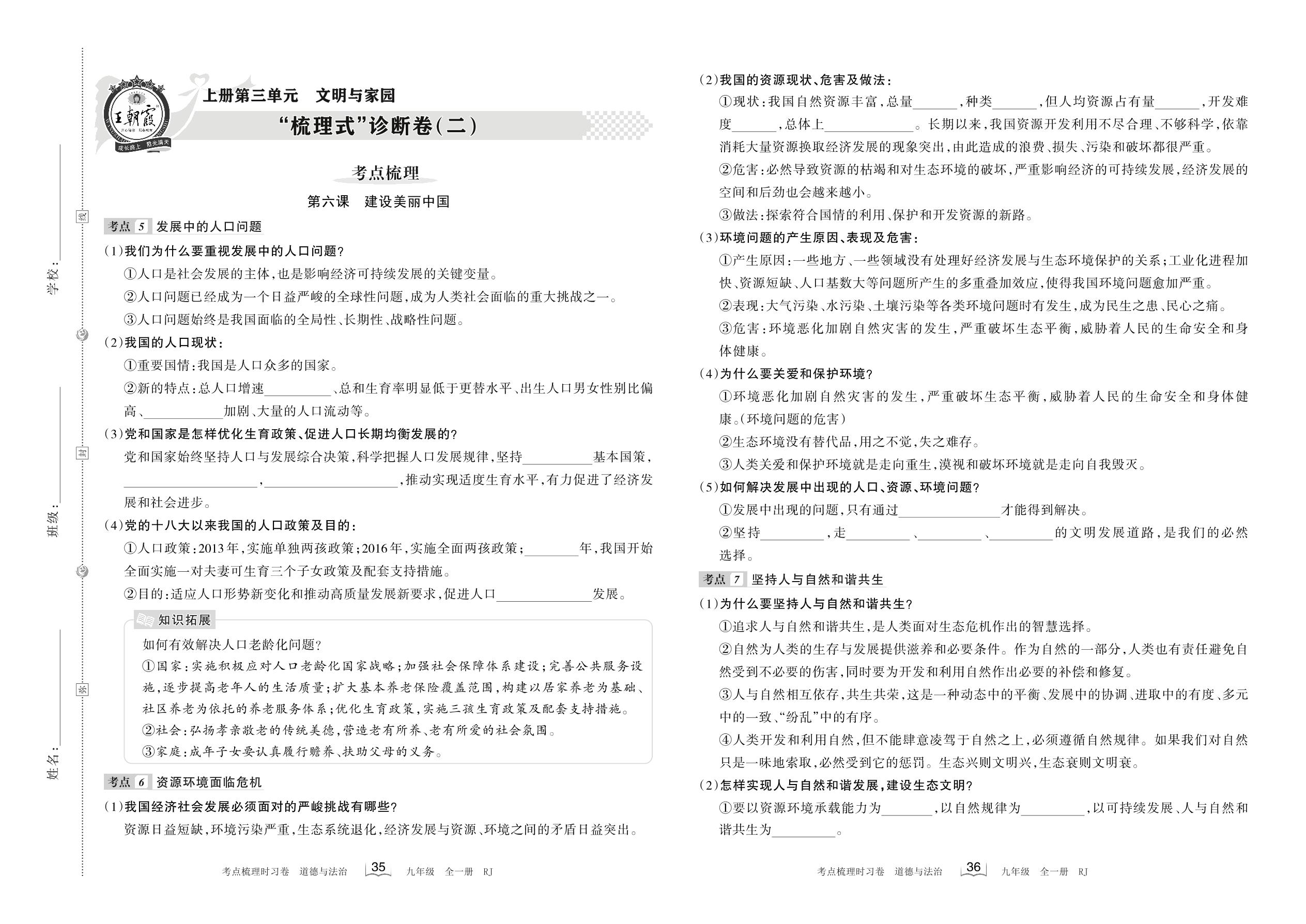 2022上册九年级道德与法治人教版 第三单元 “梳理式”诊断卷(二)