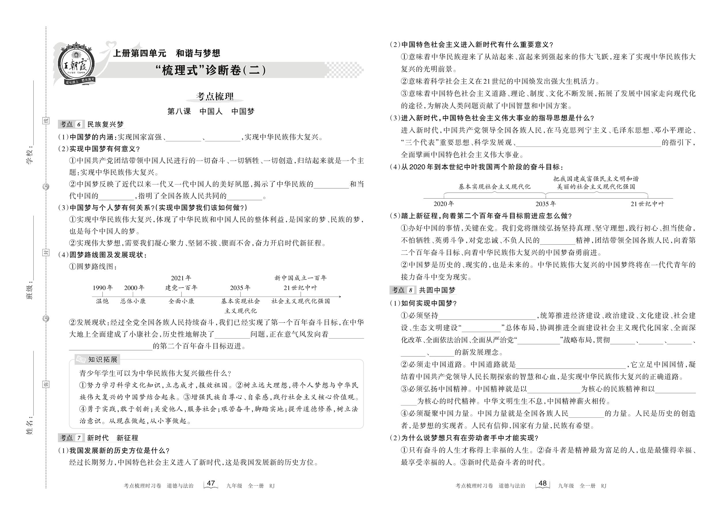2022上册九年级道德与法治人教版 第四单元 “梳理式”诊断卷(二)