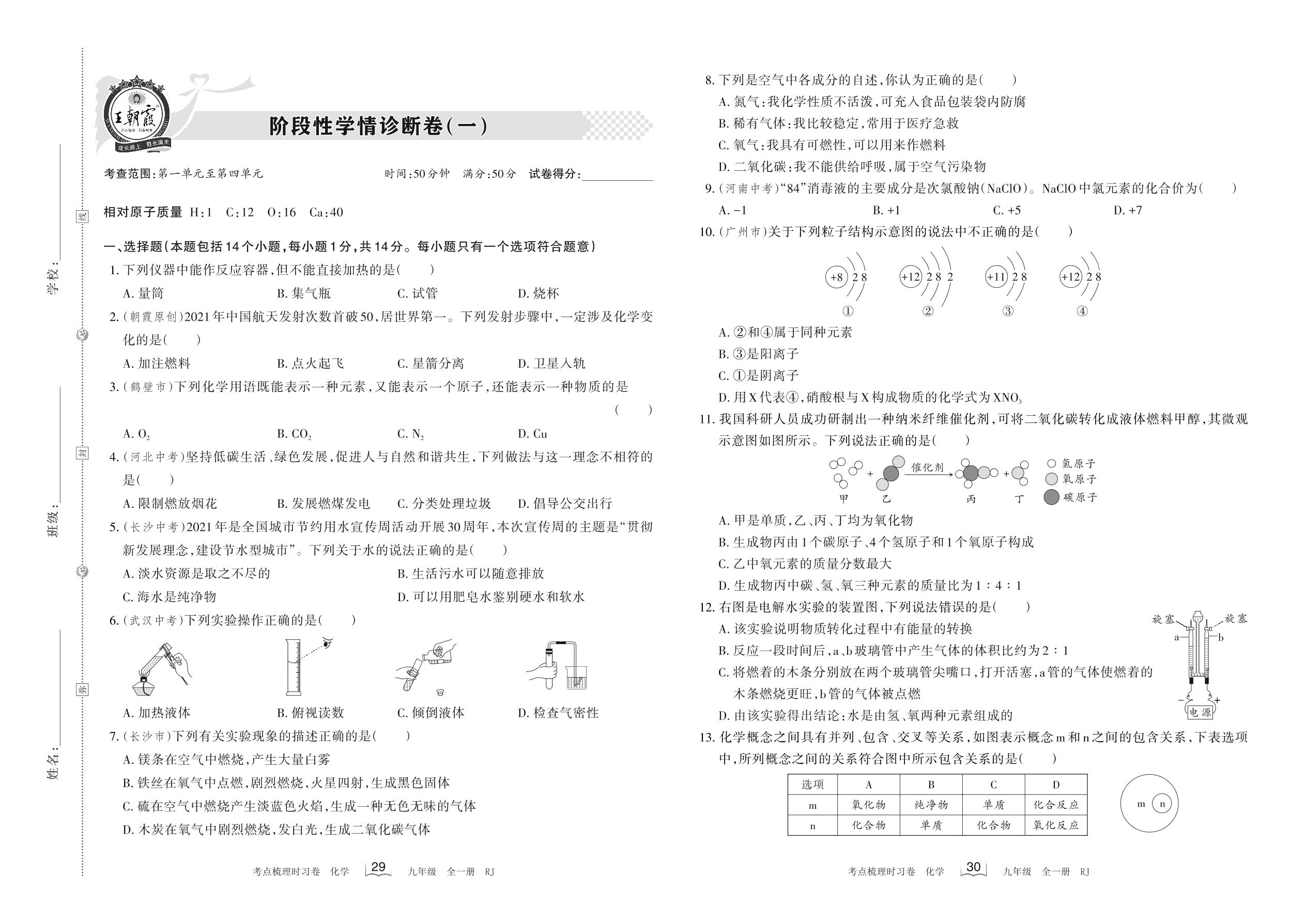2022秋上册九年级化学人教版 阶段性学情诊断卷(一)