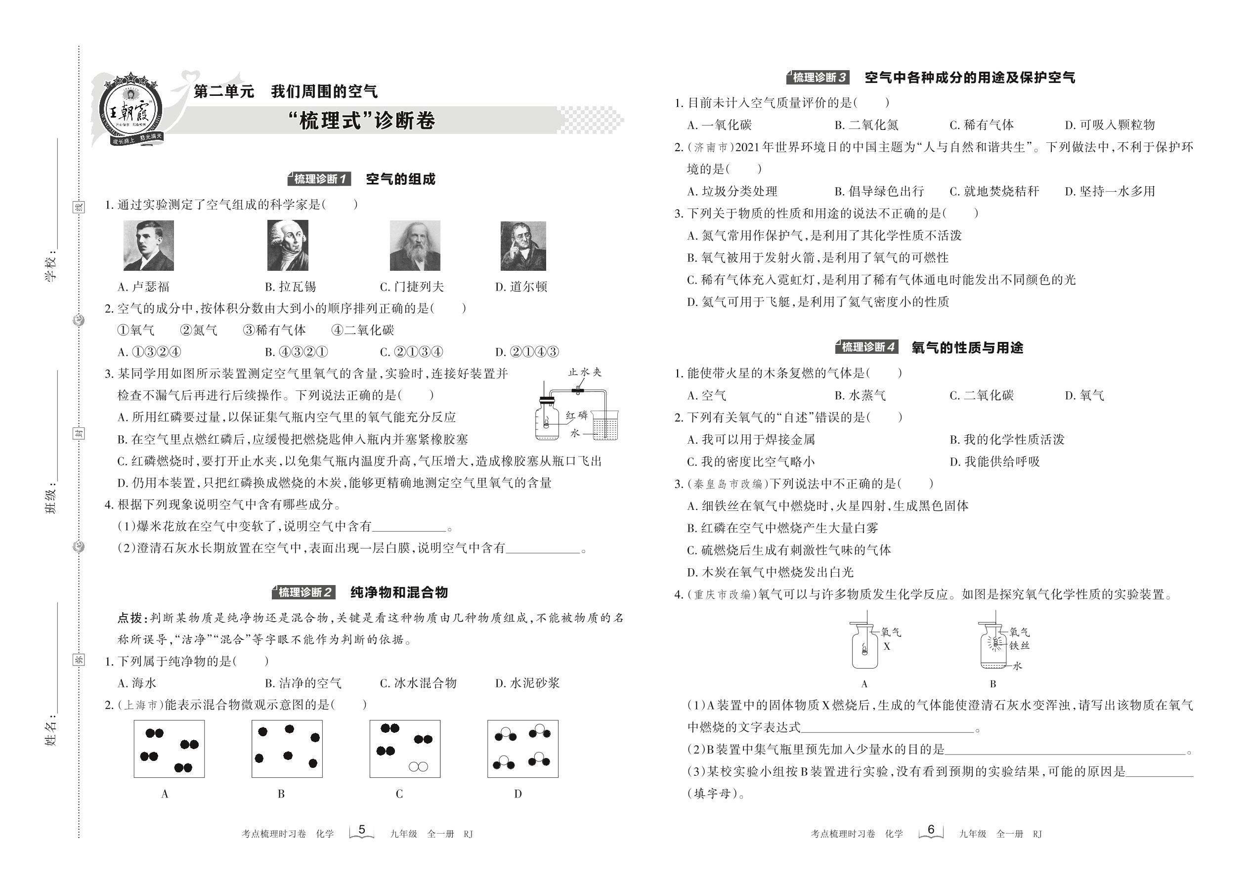 2022秋上册九年级化学人教版 第二单元 “梳理式”诊卷