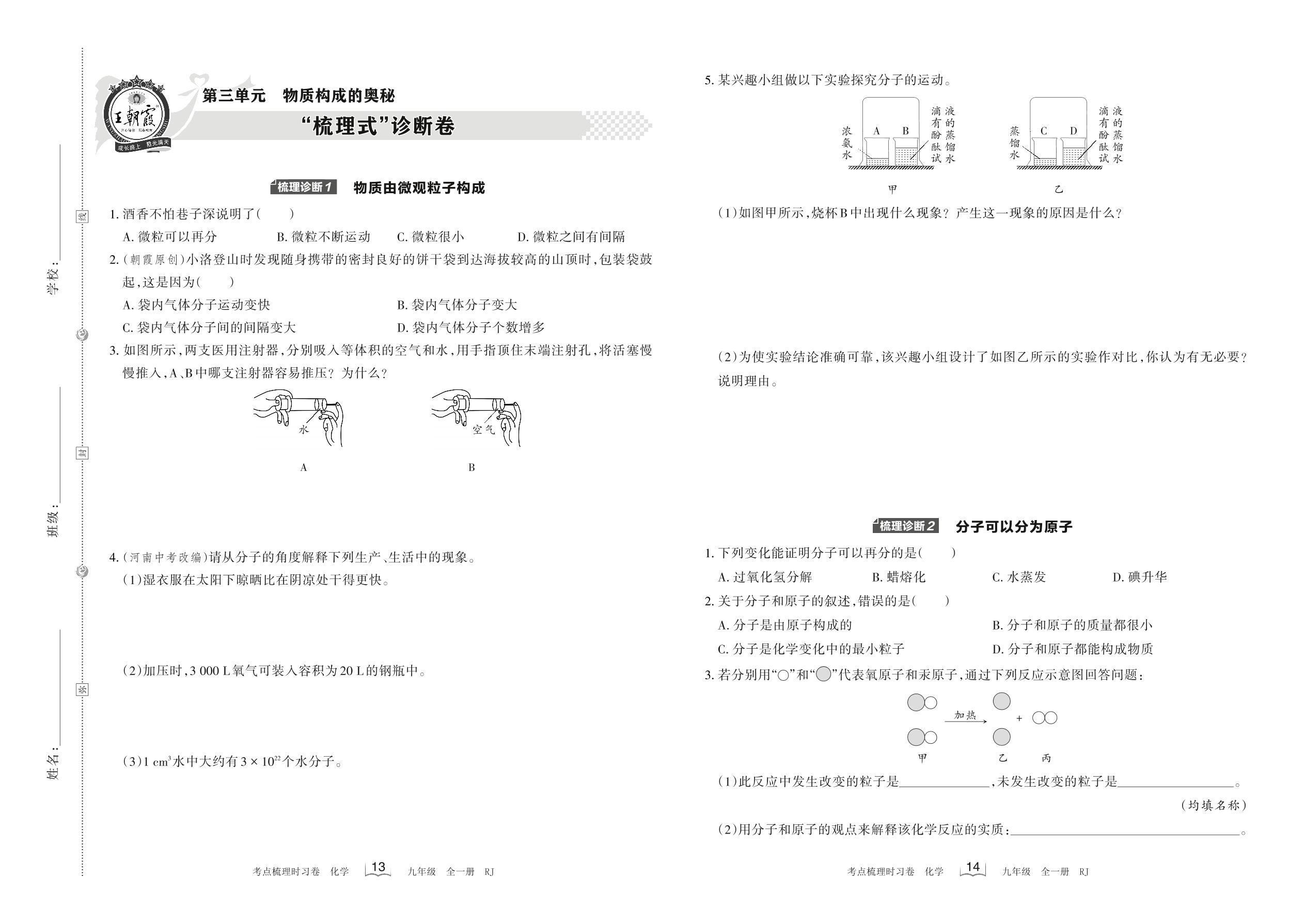 2022秋上册九年级化学人教版 第三单元 “梳理式”诊断卷