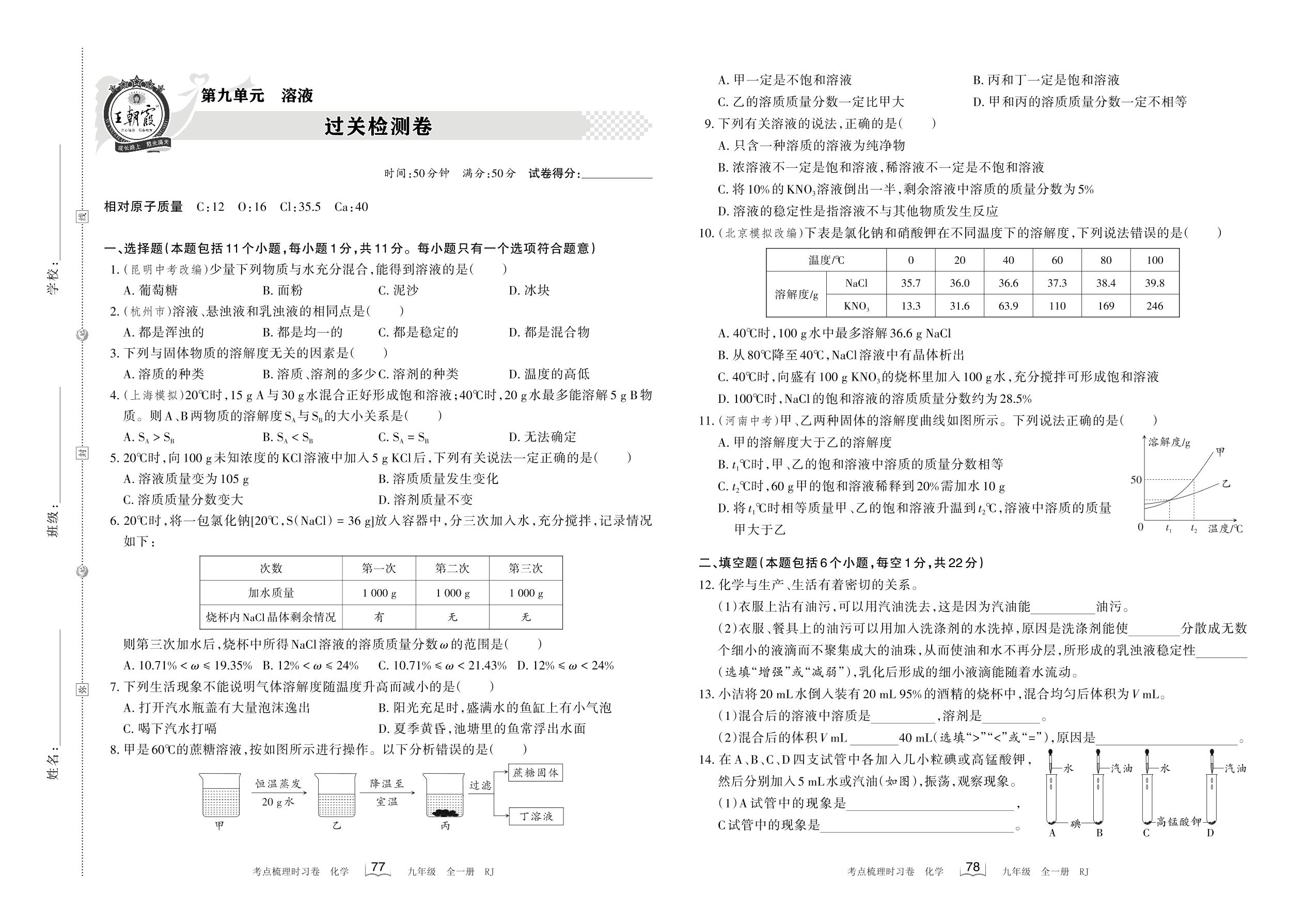 2023春下册九年级化学人教版 第九单元 过关检测卷