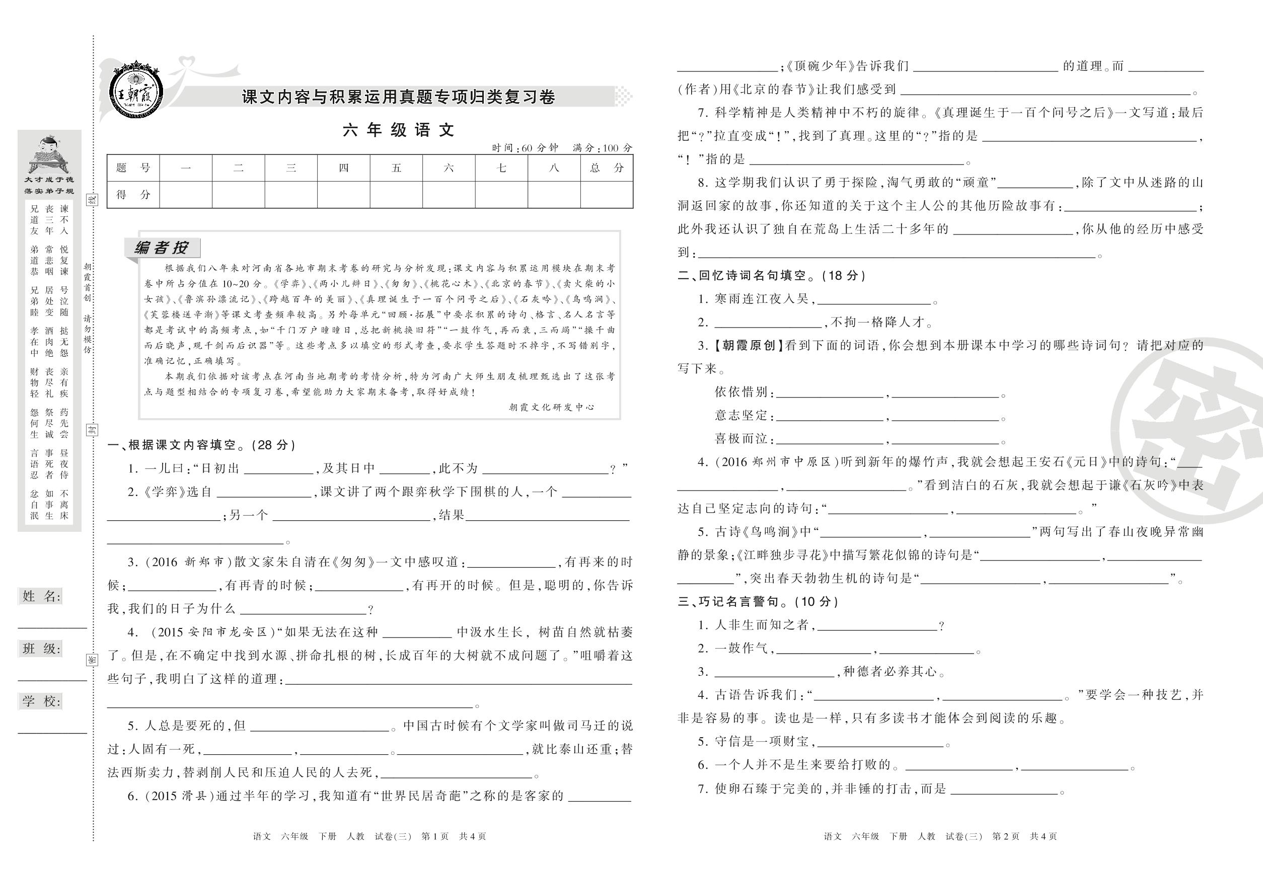 王朝霞期末专项卷六年级下册语文(人教版)_R21080283546【3】
