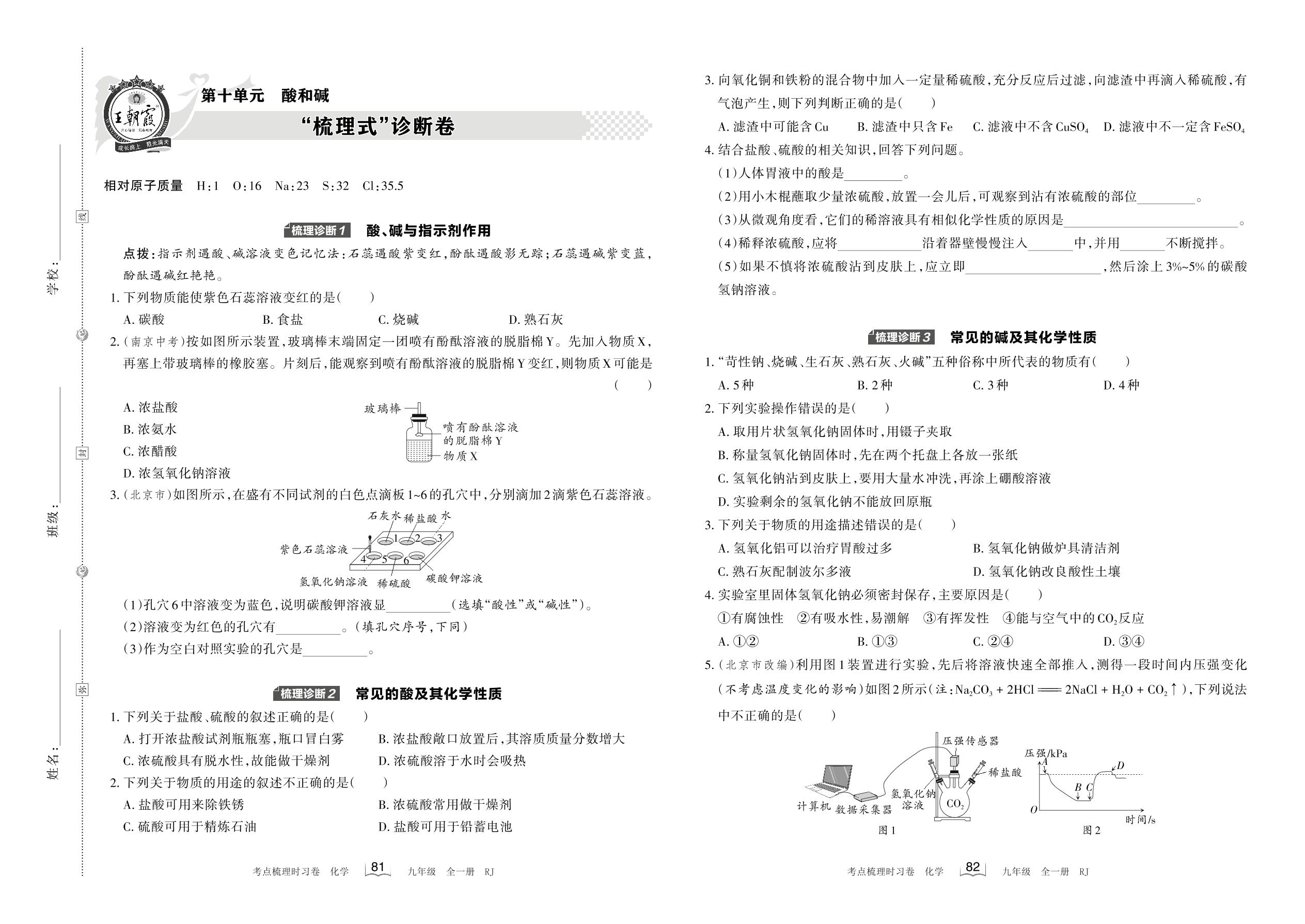 2023春下册九年级化学人教版 第十单元 “梳理式”诊断卷