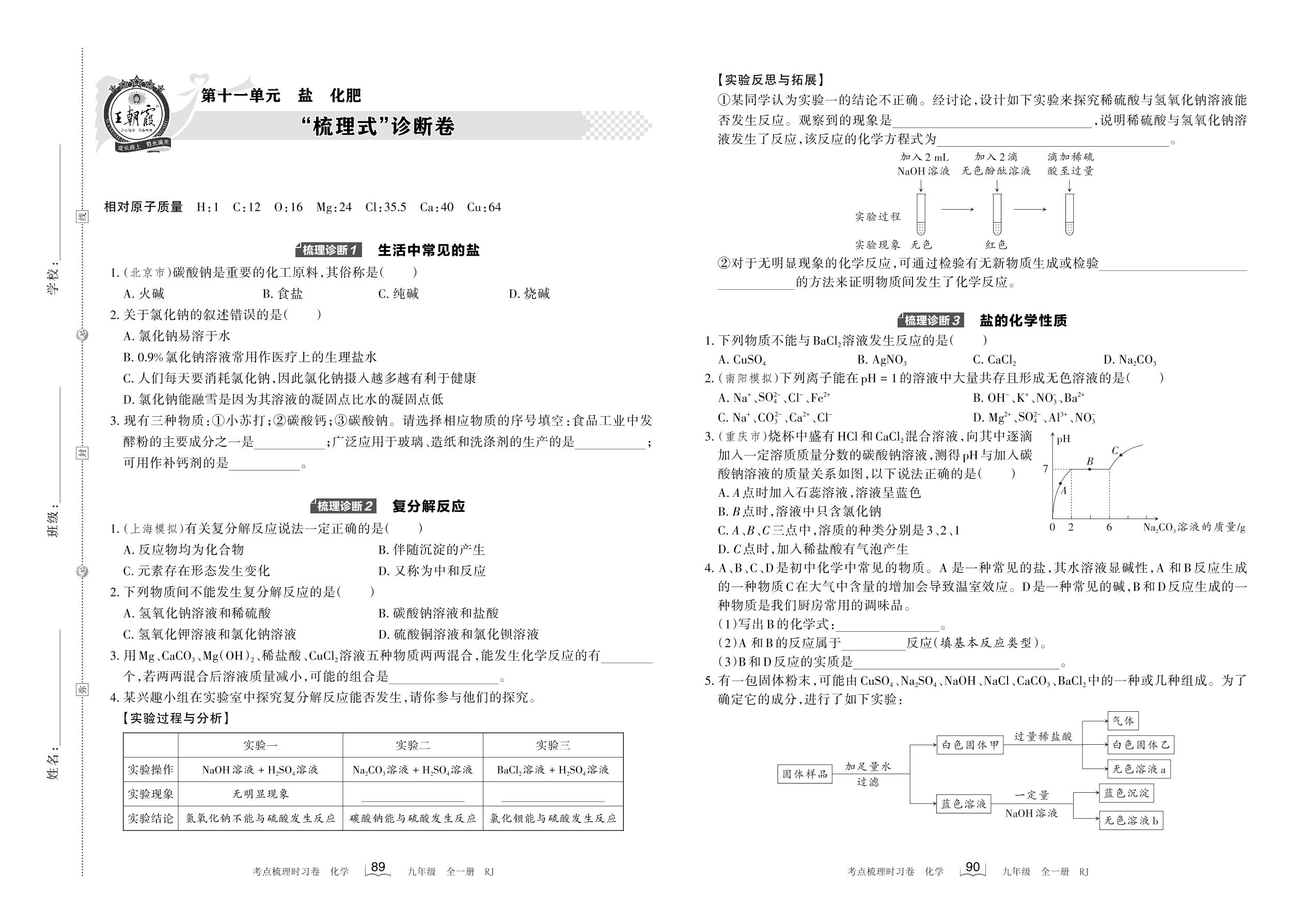 2023春下册九年级化学人教版 第十一单元 “梳理式”诊断卷