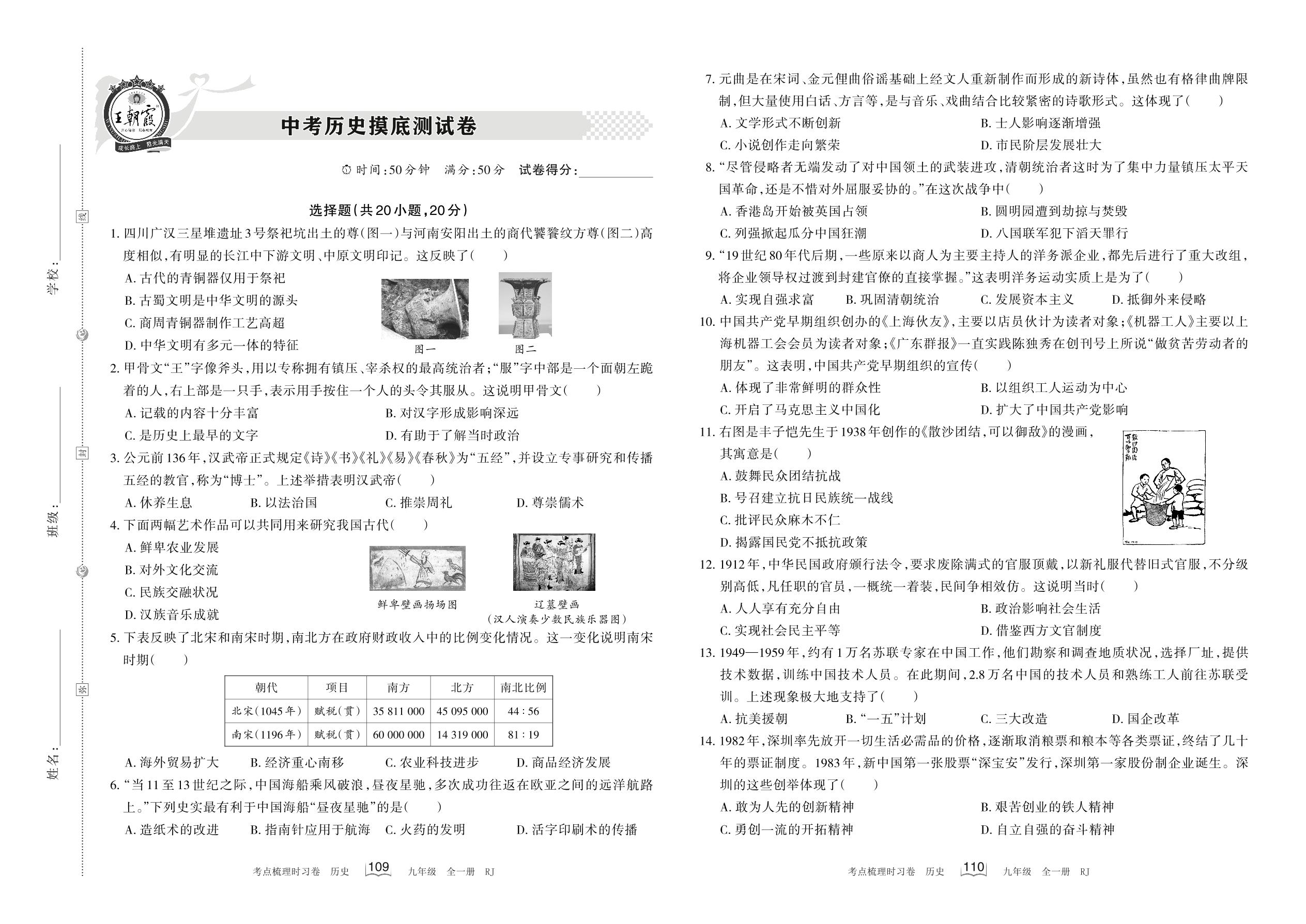 2022全一册九年级历史人教版 中考历史摸底测试卷
