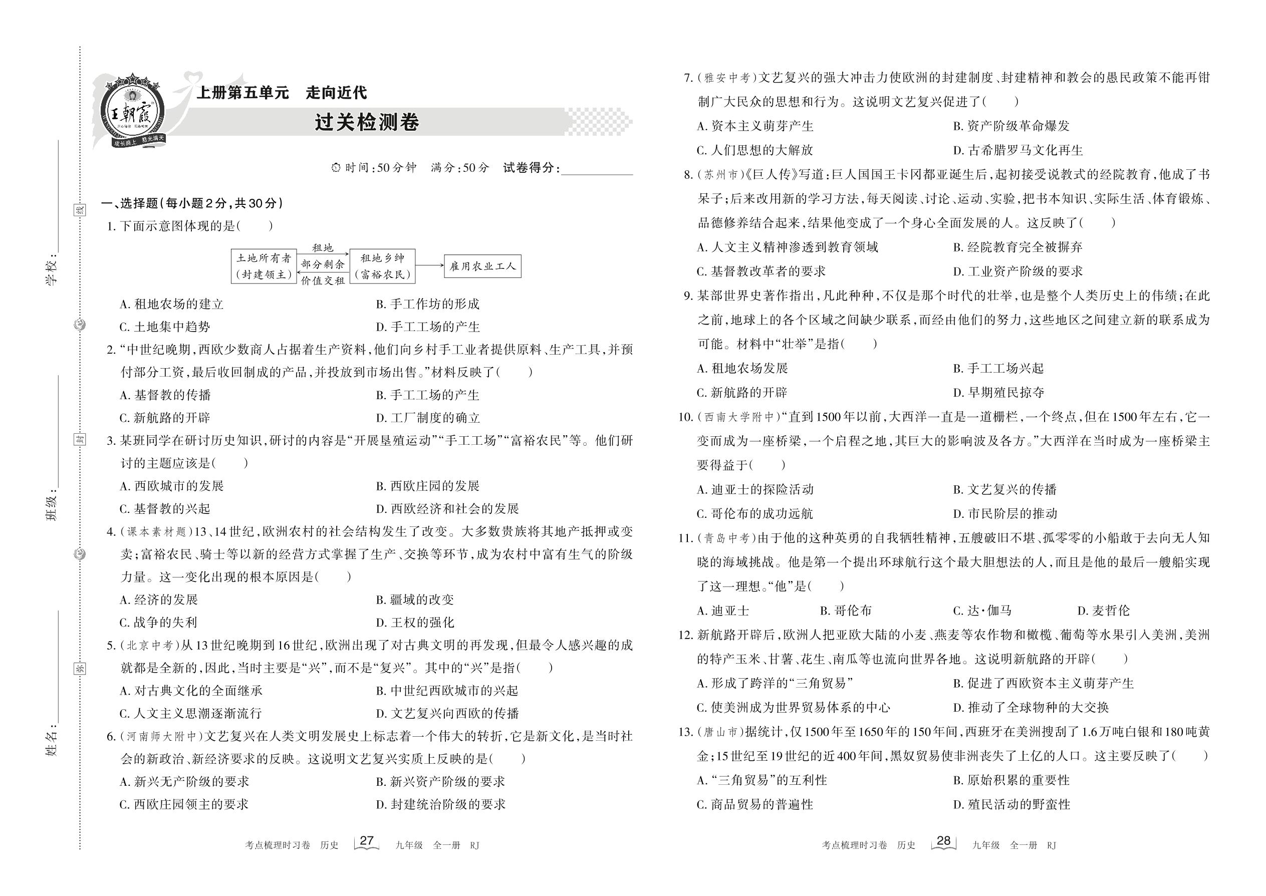 九年级历史人教版上册单元卷