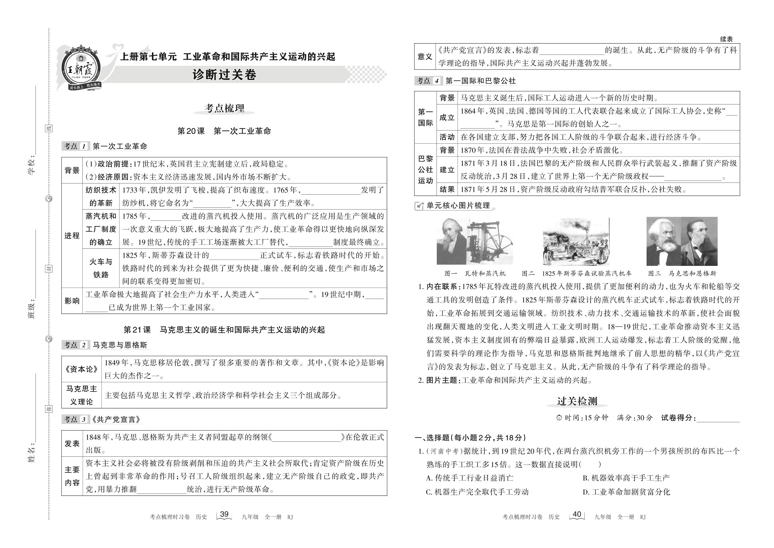 九年级历史人教版上册单元卷