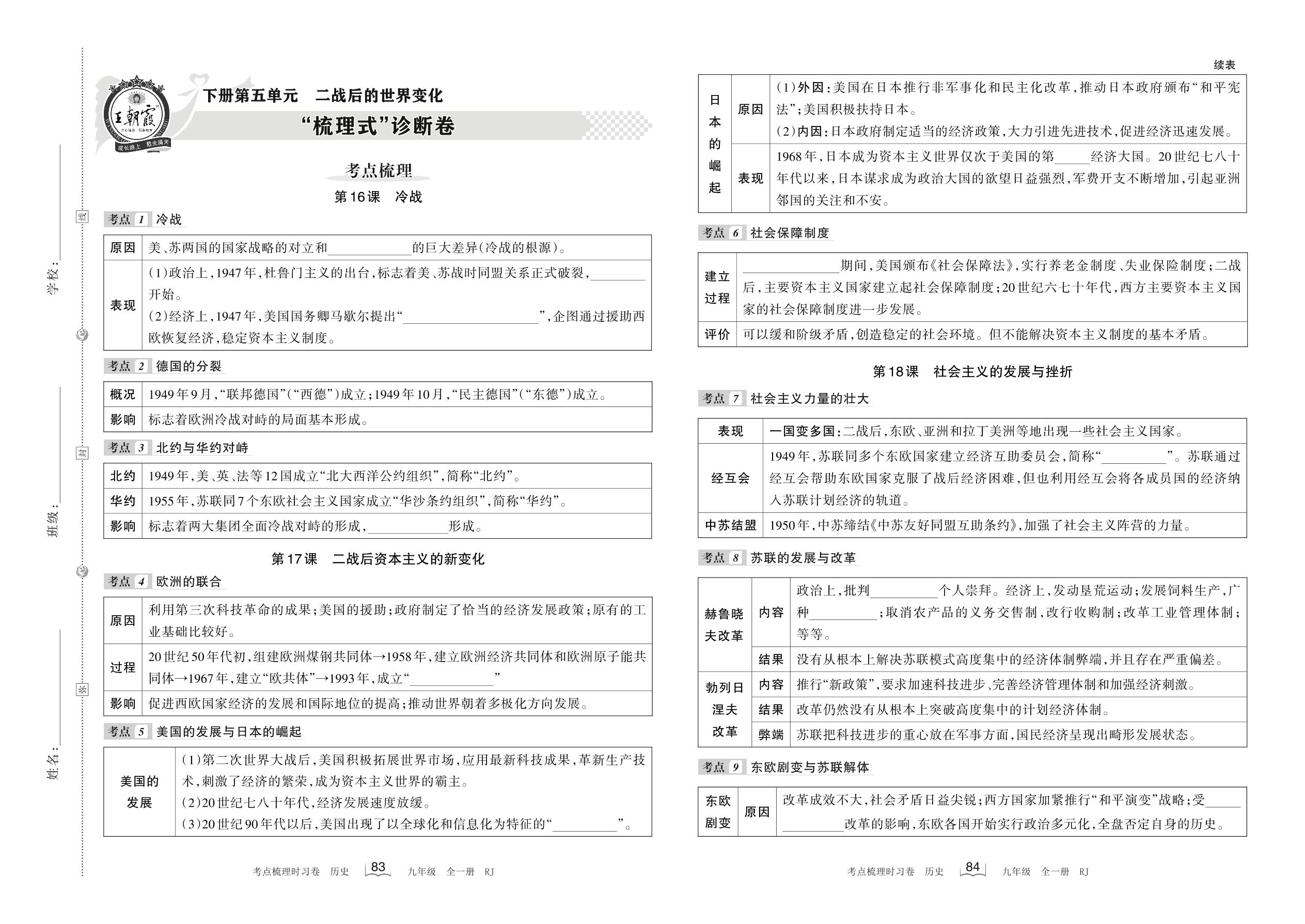 2023下册九年级历史人教版 第五单元 “梳理式”诊断卷