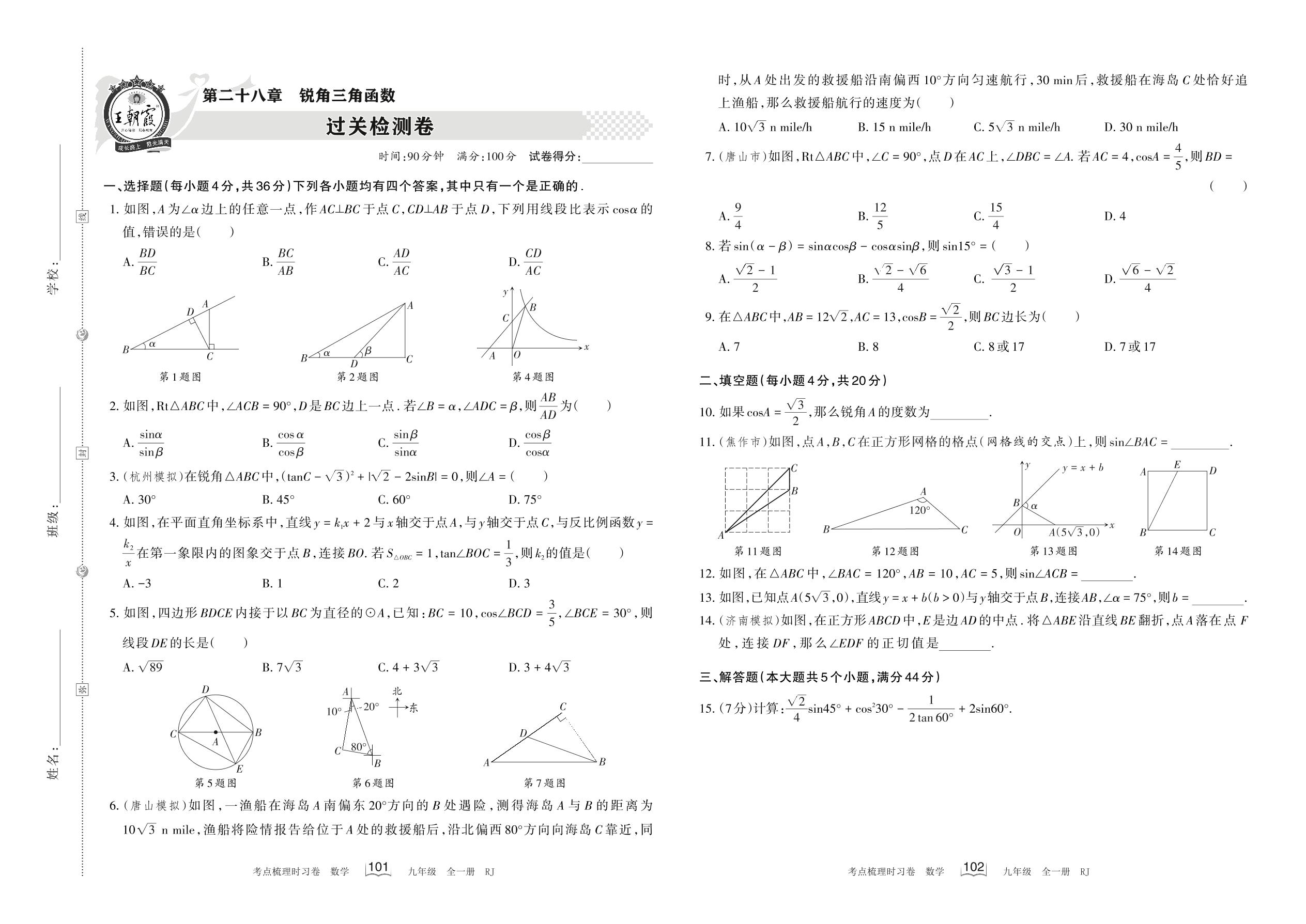 2023春下册九年级数学人教版 第二十八章 过关检测卷