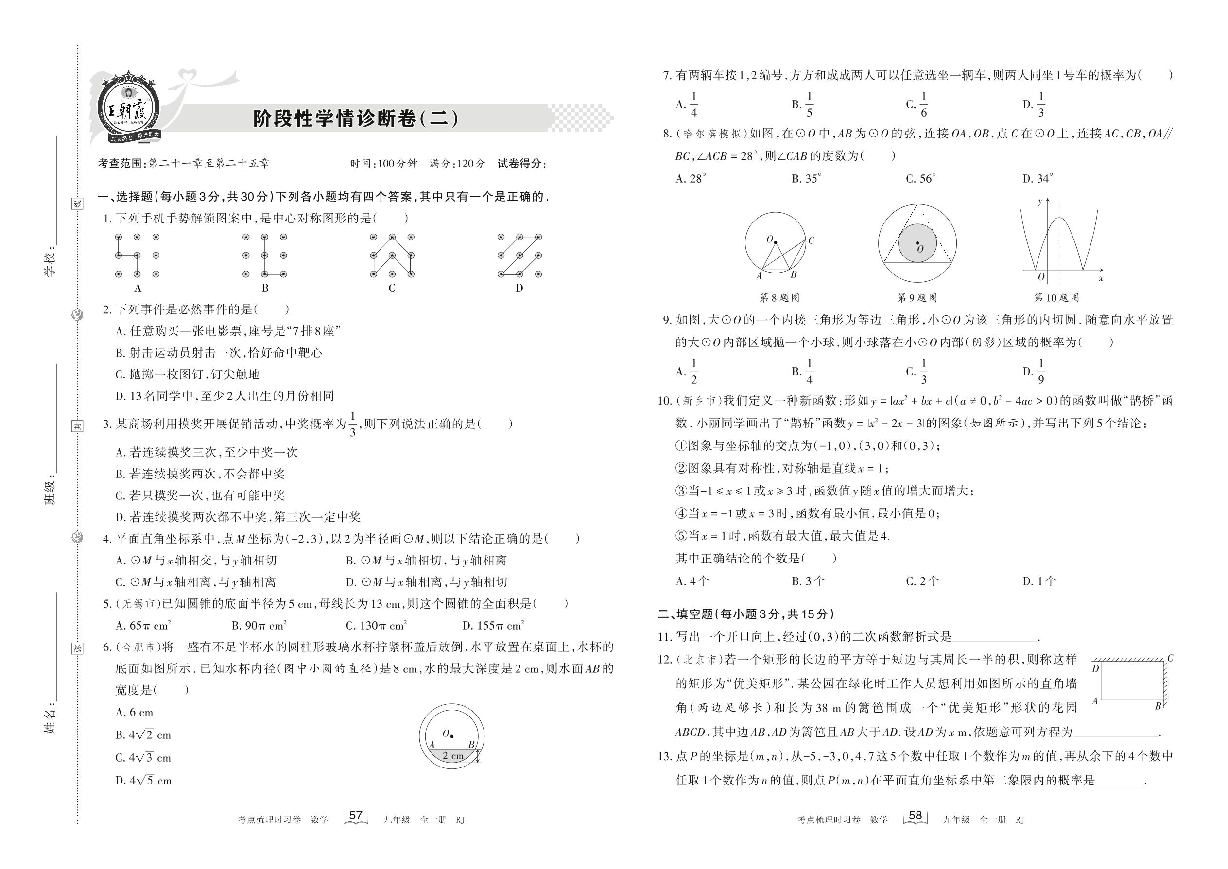 2022秋上册九年级数学人教版 阶段性学情诊断卷(二)