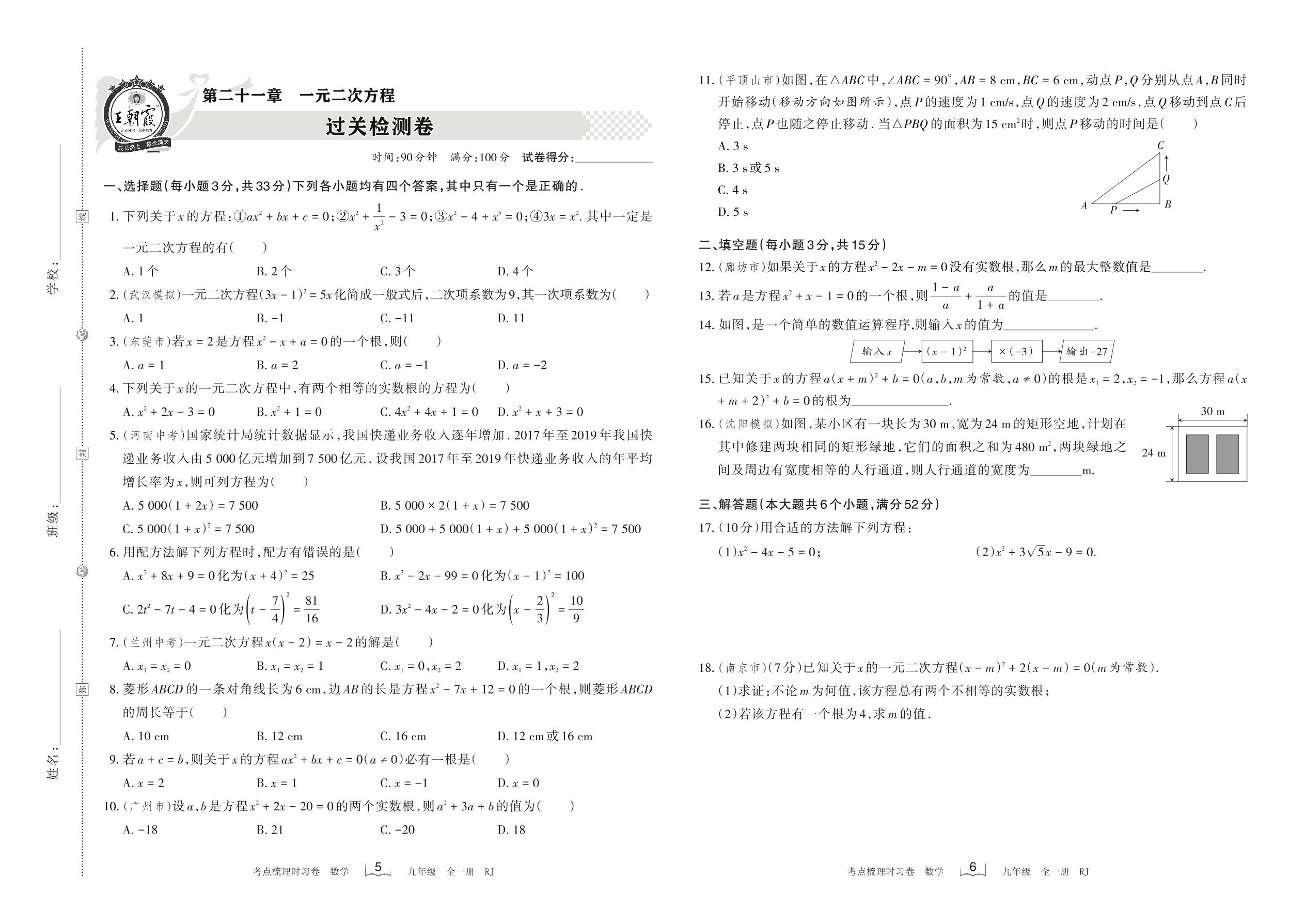 2022秋上册九年级数学人教版 第二十一章 过关检测卷