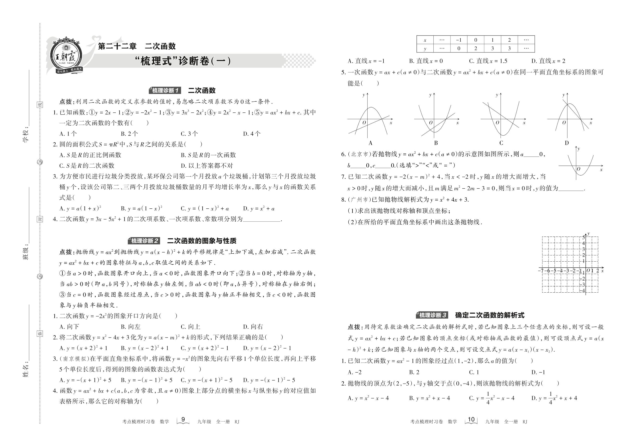 2022秋上册九年级数学人教版 第二十二章 “梳理式”诊断卷(一)