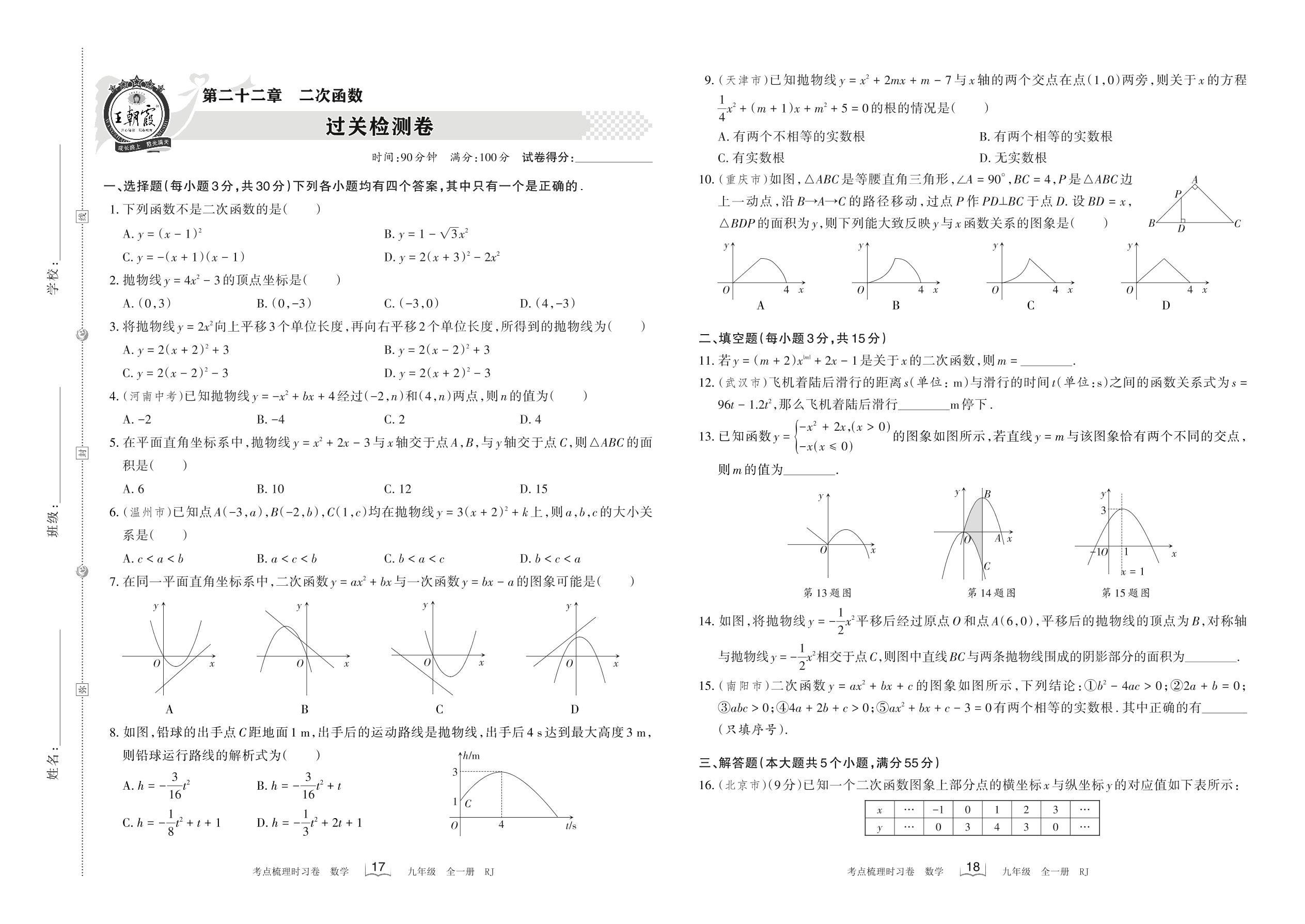 2022秋上册九年级数学人教版 第二十二章 过关检测卷
