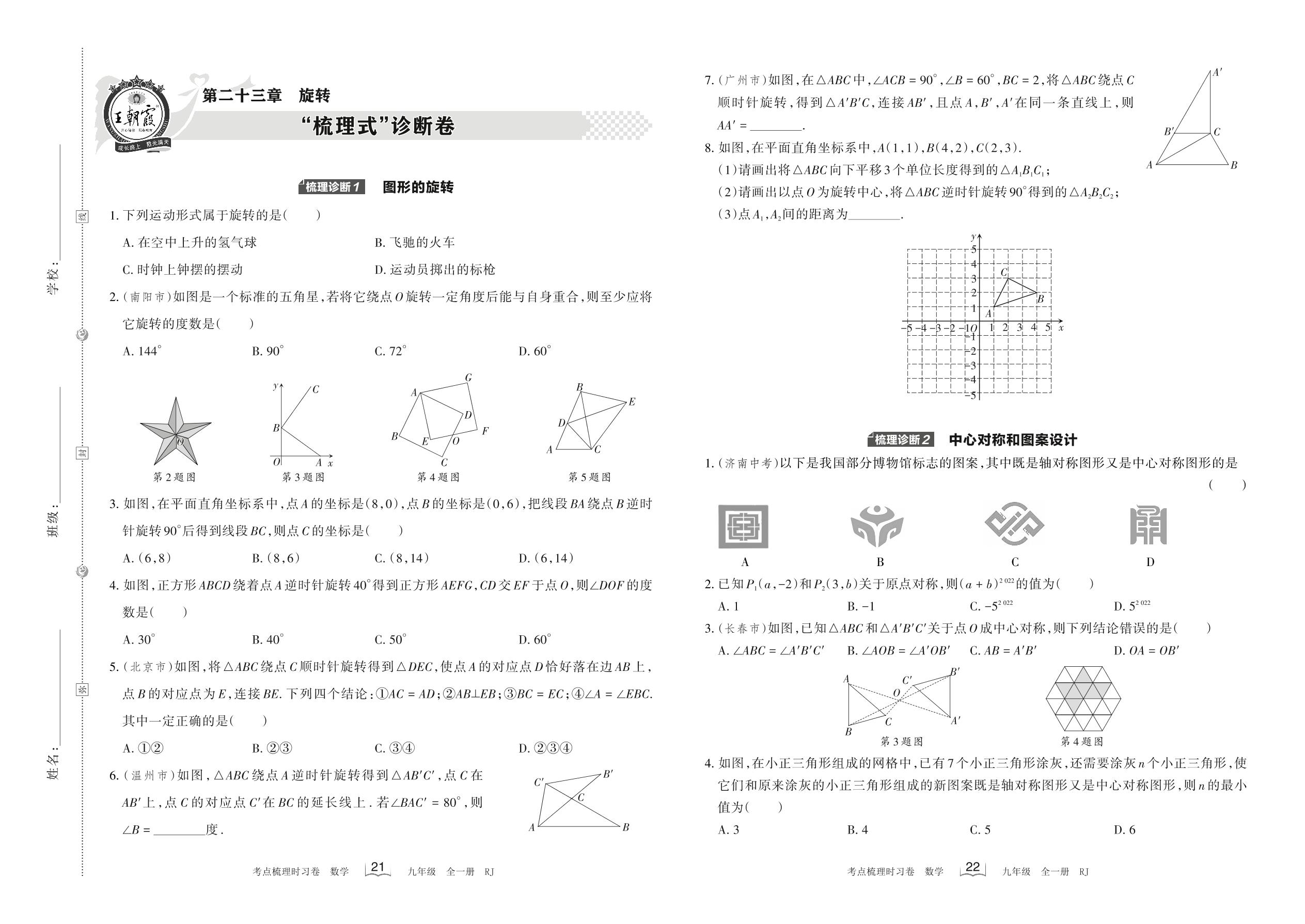 2022秋上册九年级数学人教版 第二十三章 “梳理式”诊断卷