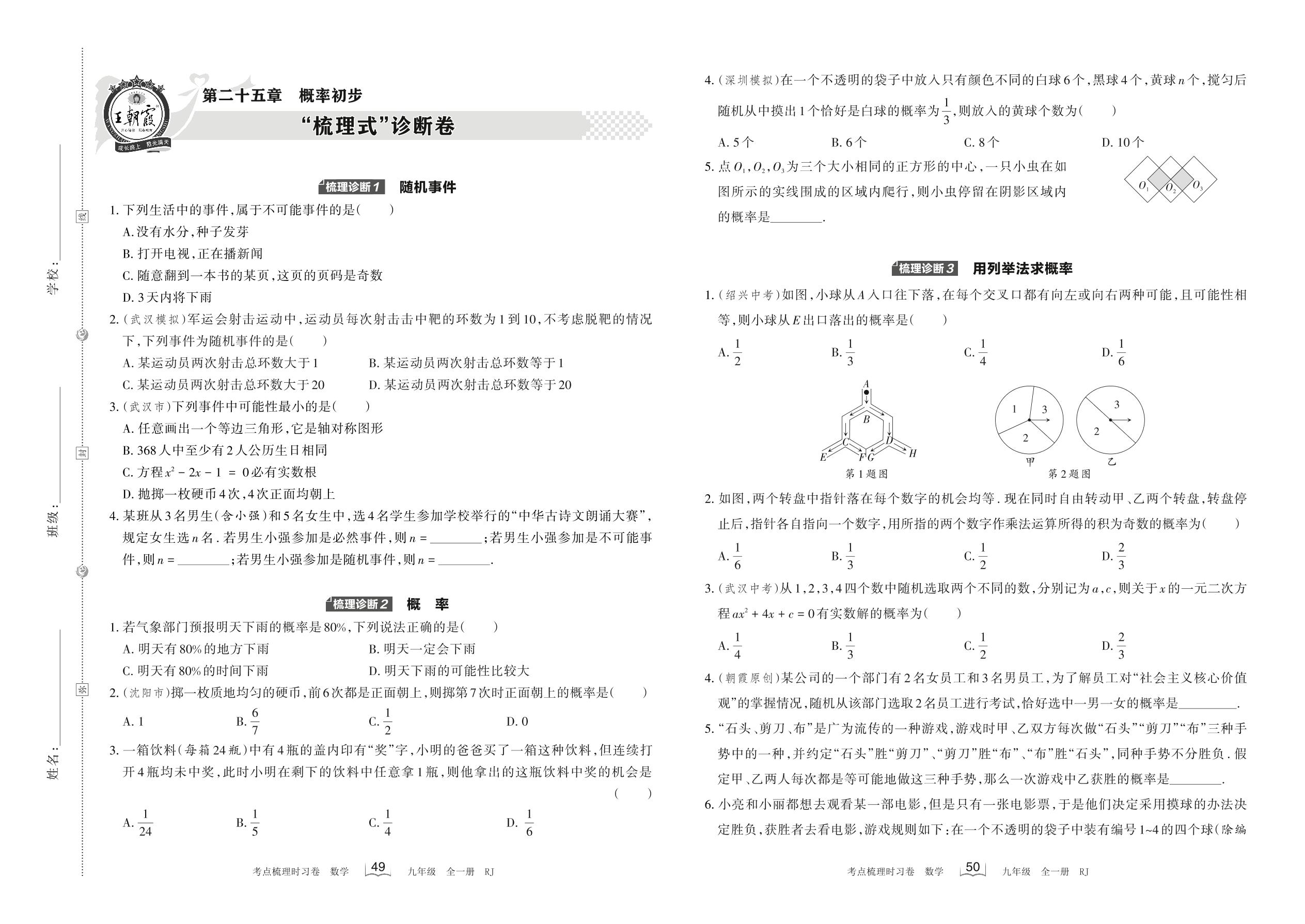 2022秋上册九年级数学人教版 第二十五章 “梳理式”诊断