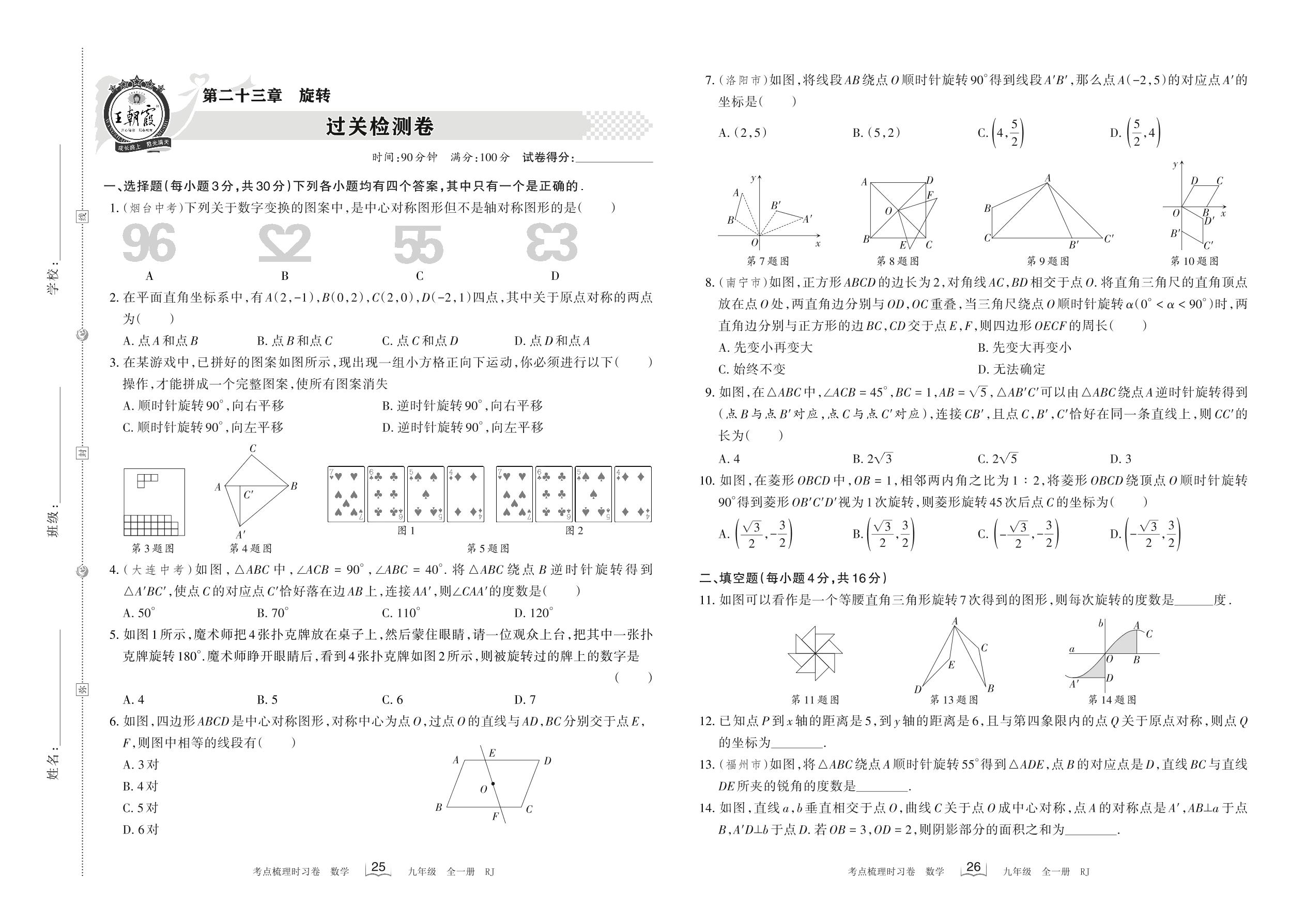 2022秋上册九年级数学人教版 第二十三章 过关检测卷