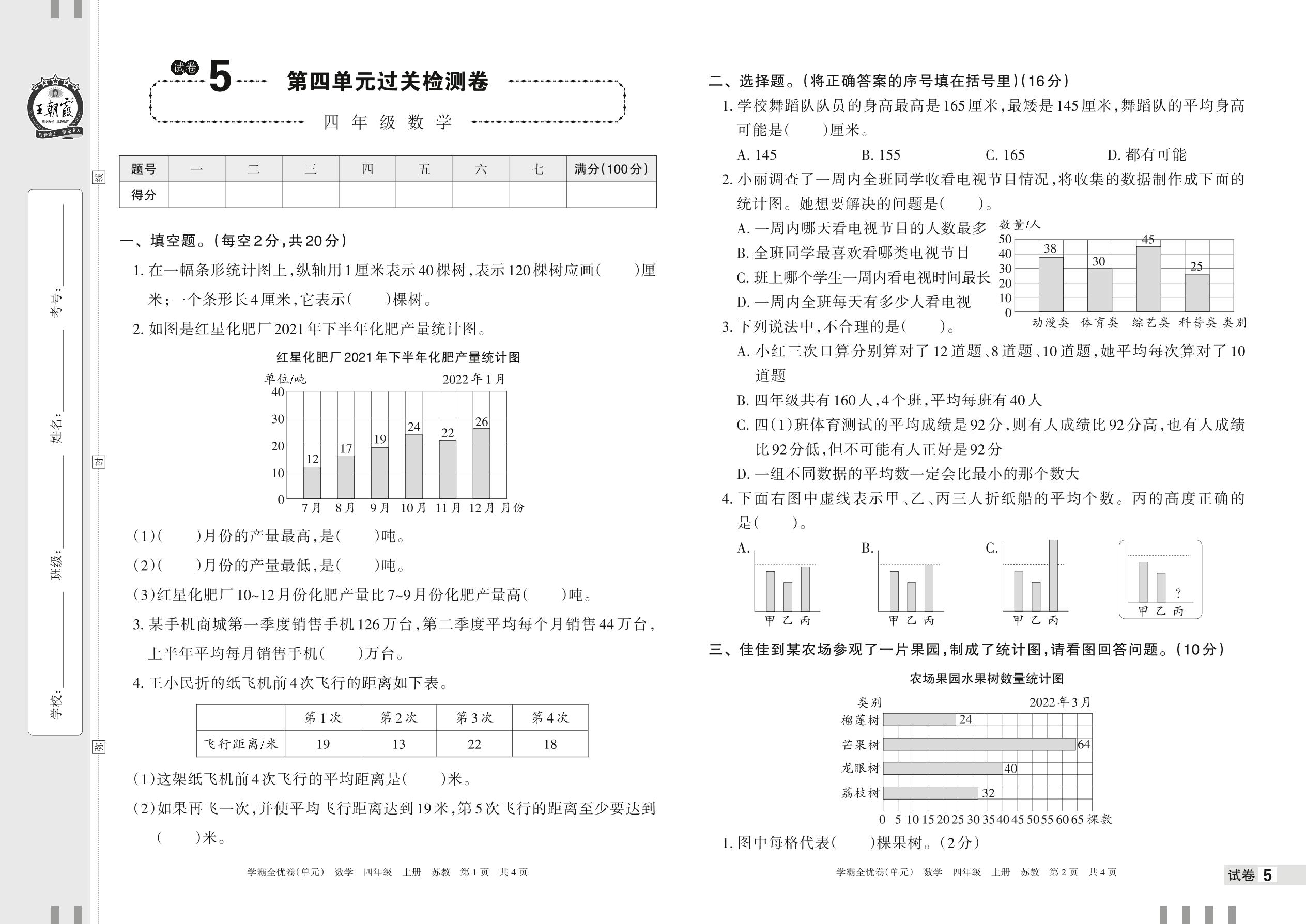 2022上册四年级数学苏教版 试卷5 第四单元过关检测卷