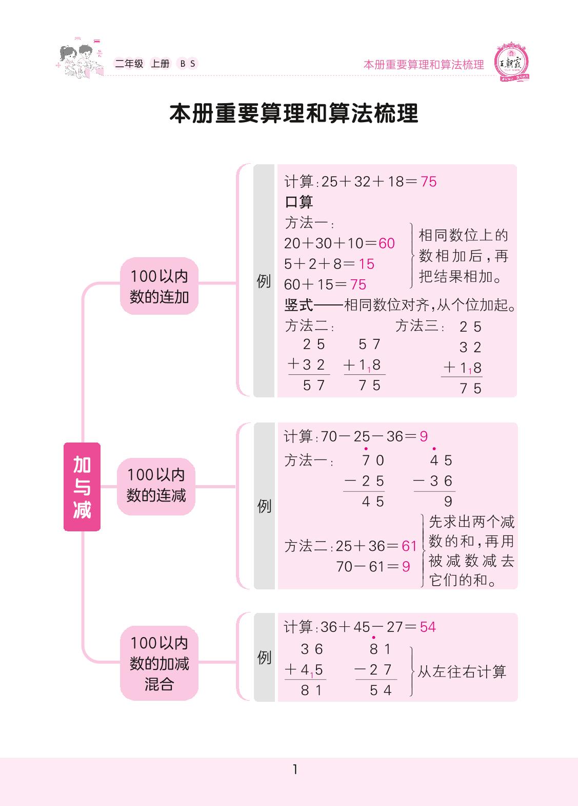 2022上册二年级数学北师版 本册重要算理和算法梳理