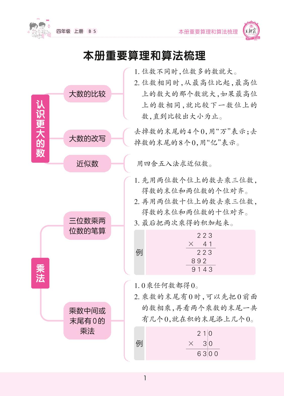 2022上册四年级数学北师版 本册重要算理和算法梳理