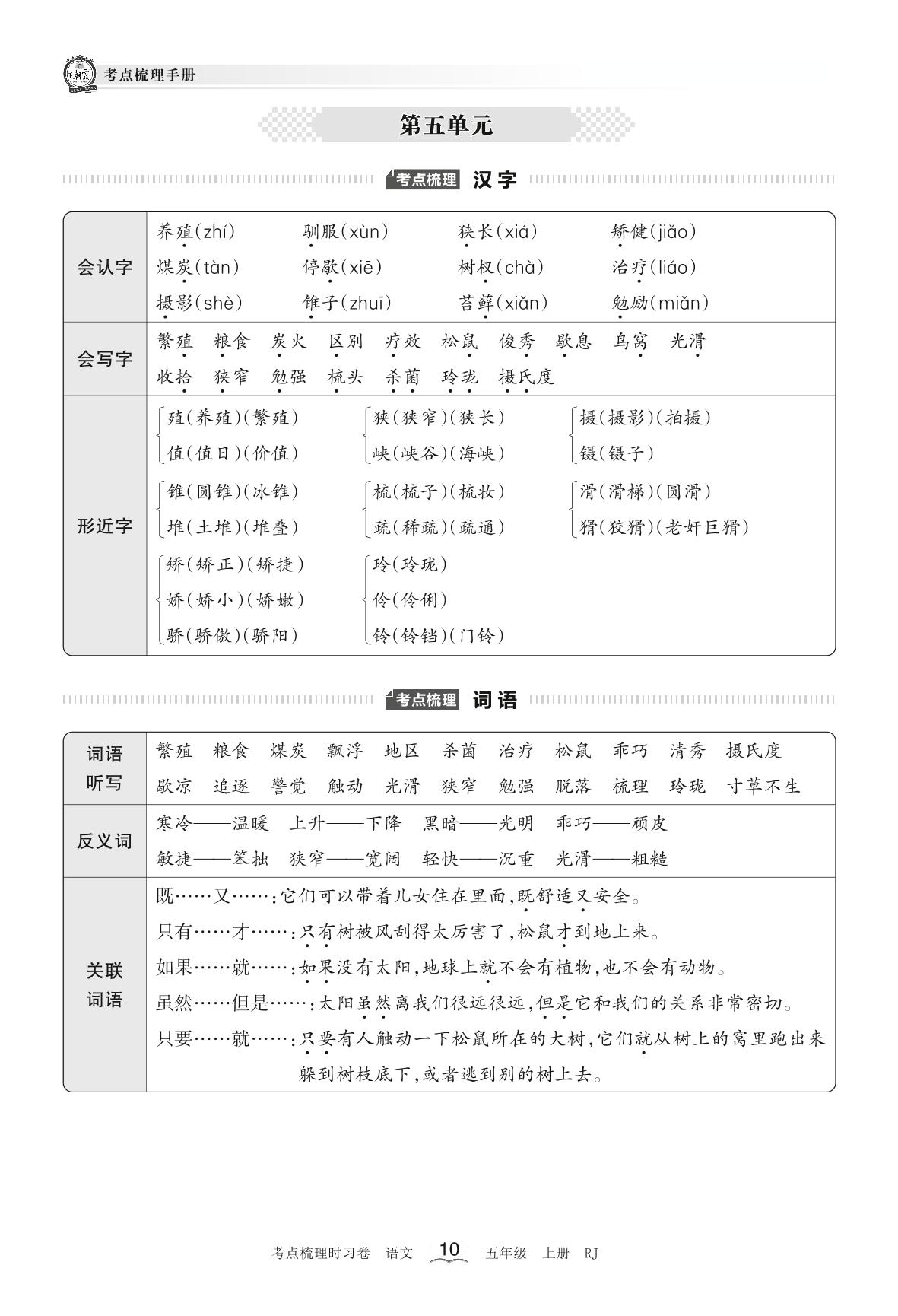 2022上册五年级语文人教版 考点梳理手册——第五单元